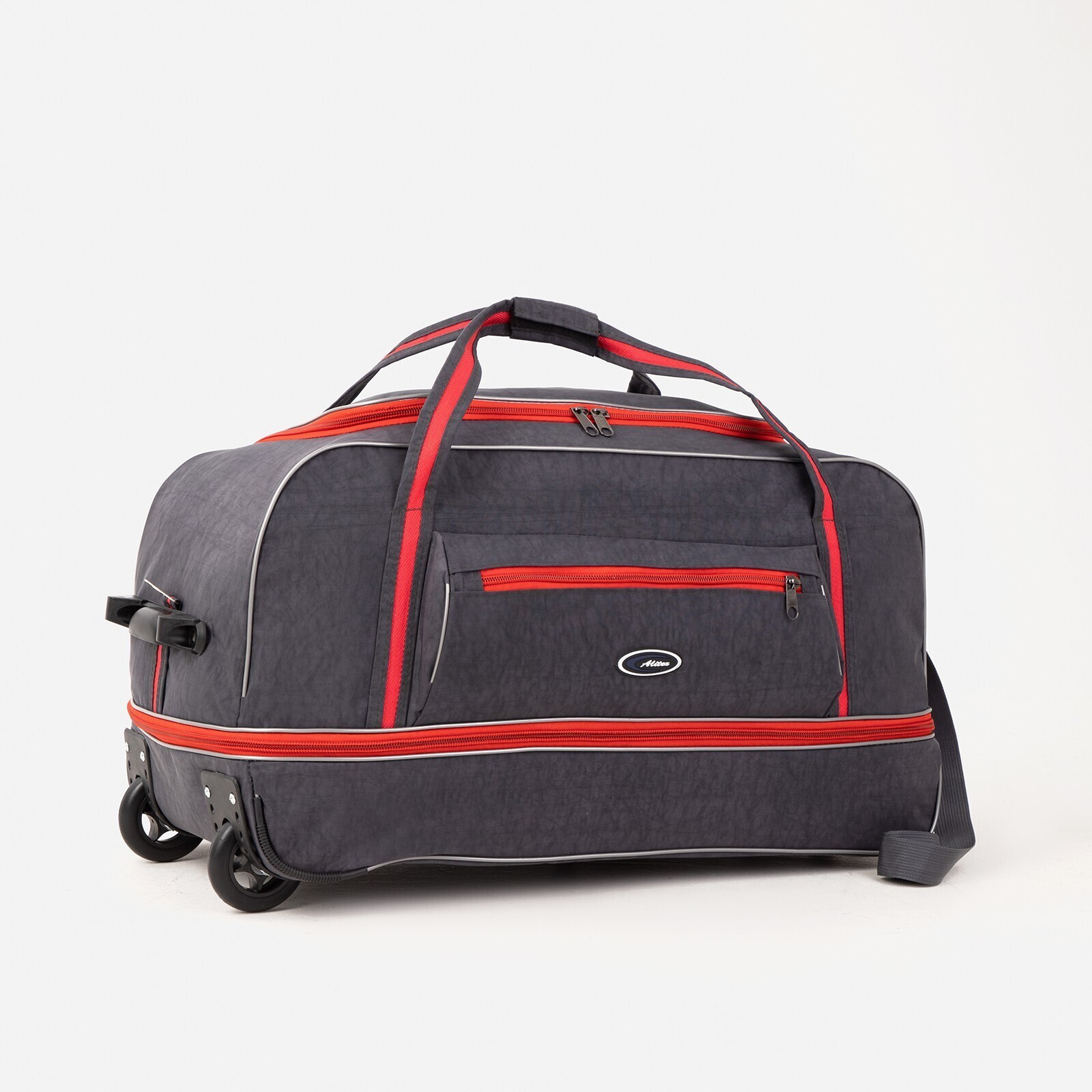 Сумка дорожная на колёсах, отдел на молнии, с увеличением, наружный карман, длинный ремень, цвет серый/красный