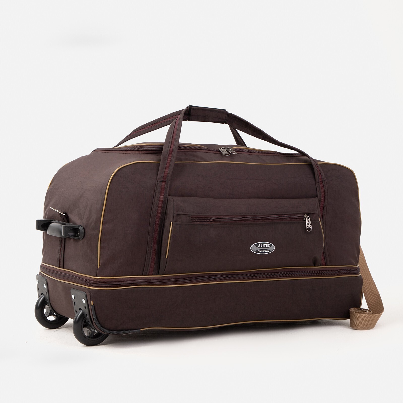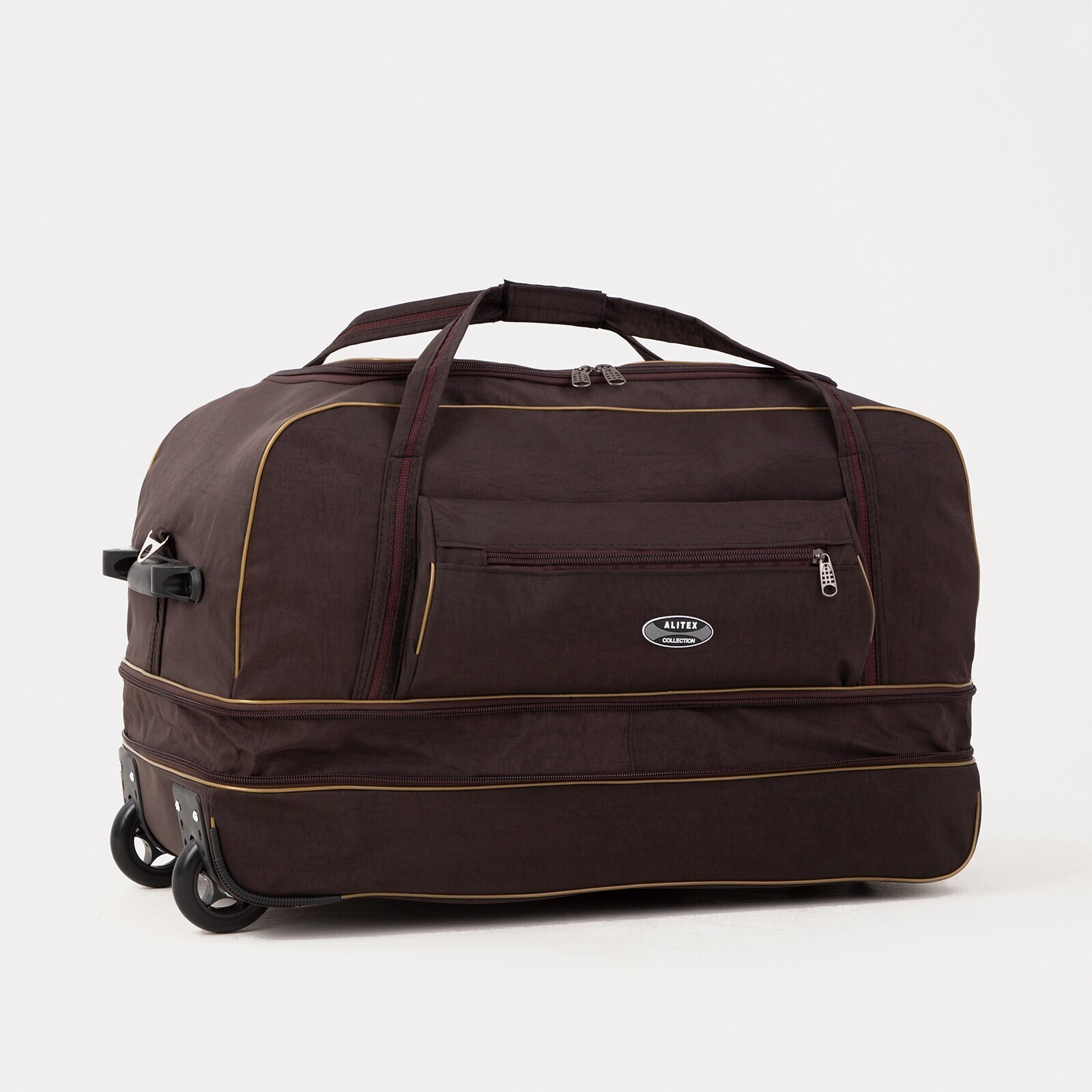 Сумка дорожная на колёсах, отдел на молнии, с увеличением, наружный карман, длинный ремень, цвет коричневый