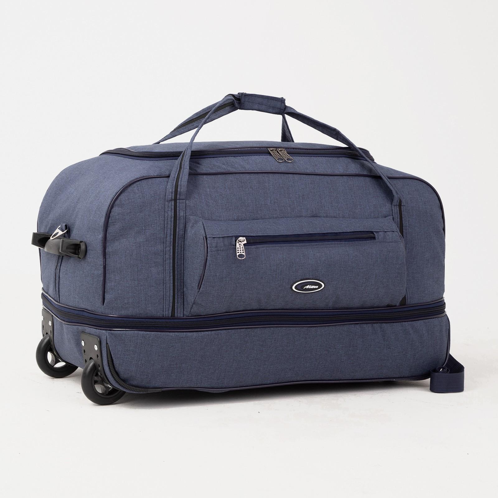 Сумка дорожная на колёсах, отдел на молнии, с увеличением, наружный карман, длинный ремень, цвет синий