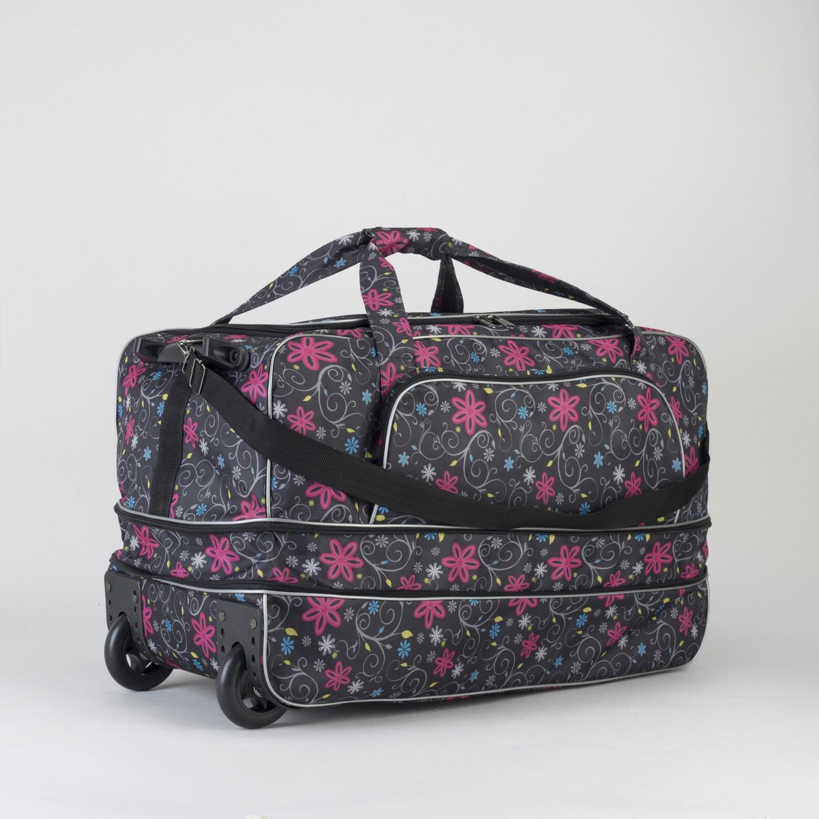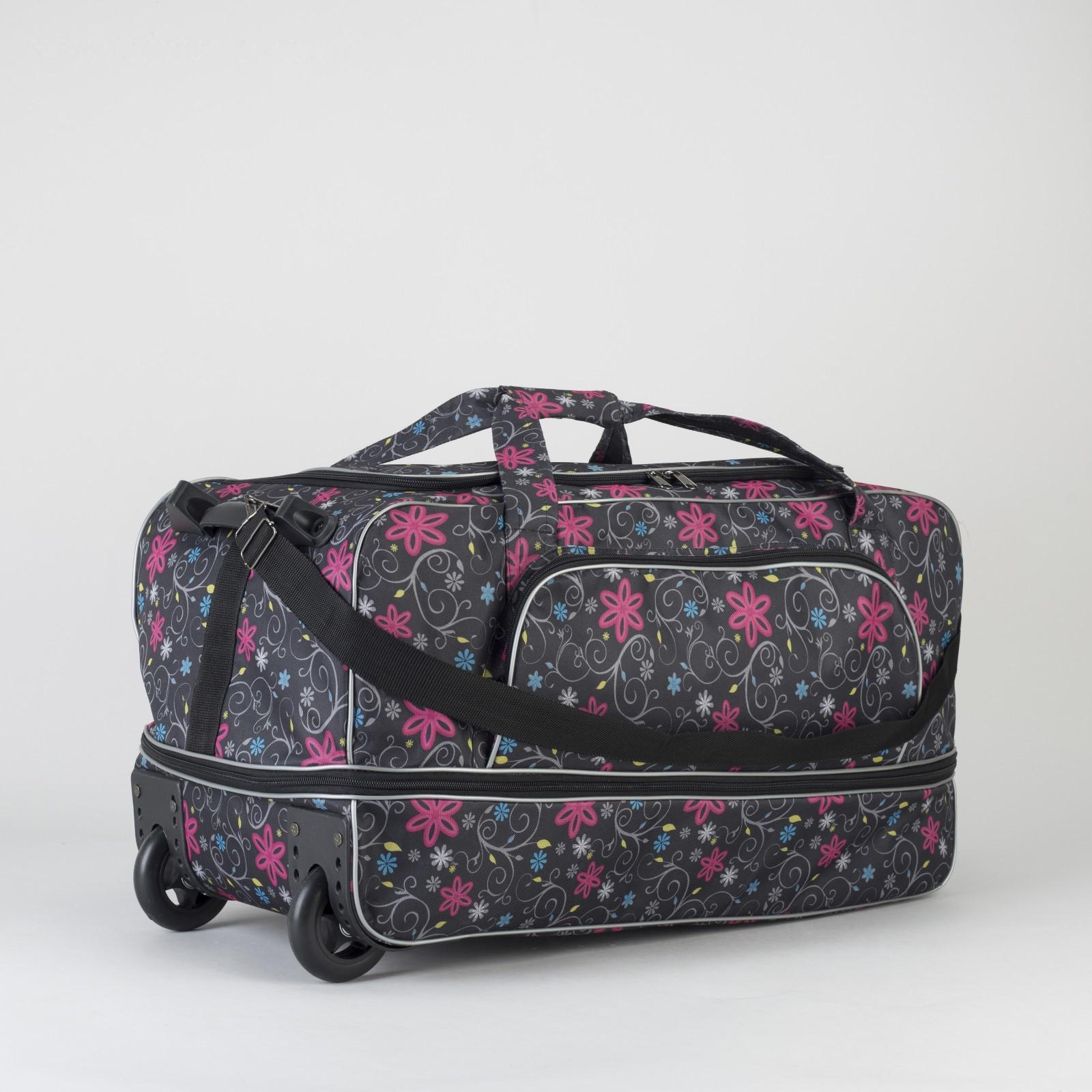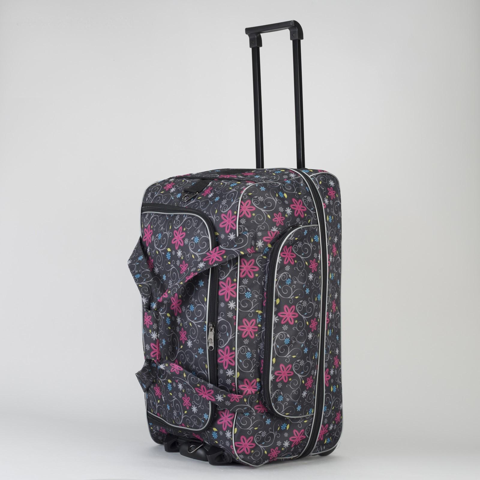 Сумка дорожная на колёсах, с расширением, отдел на молнии, наружный карман, цвет чёрный/разноцветный
