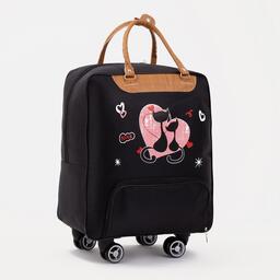 Сумка дорожная 20" на колёсах, отдел на молнии, наружный карман, цвет чёрный