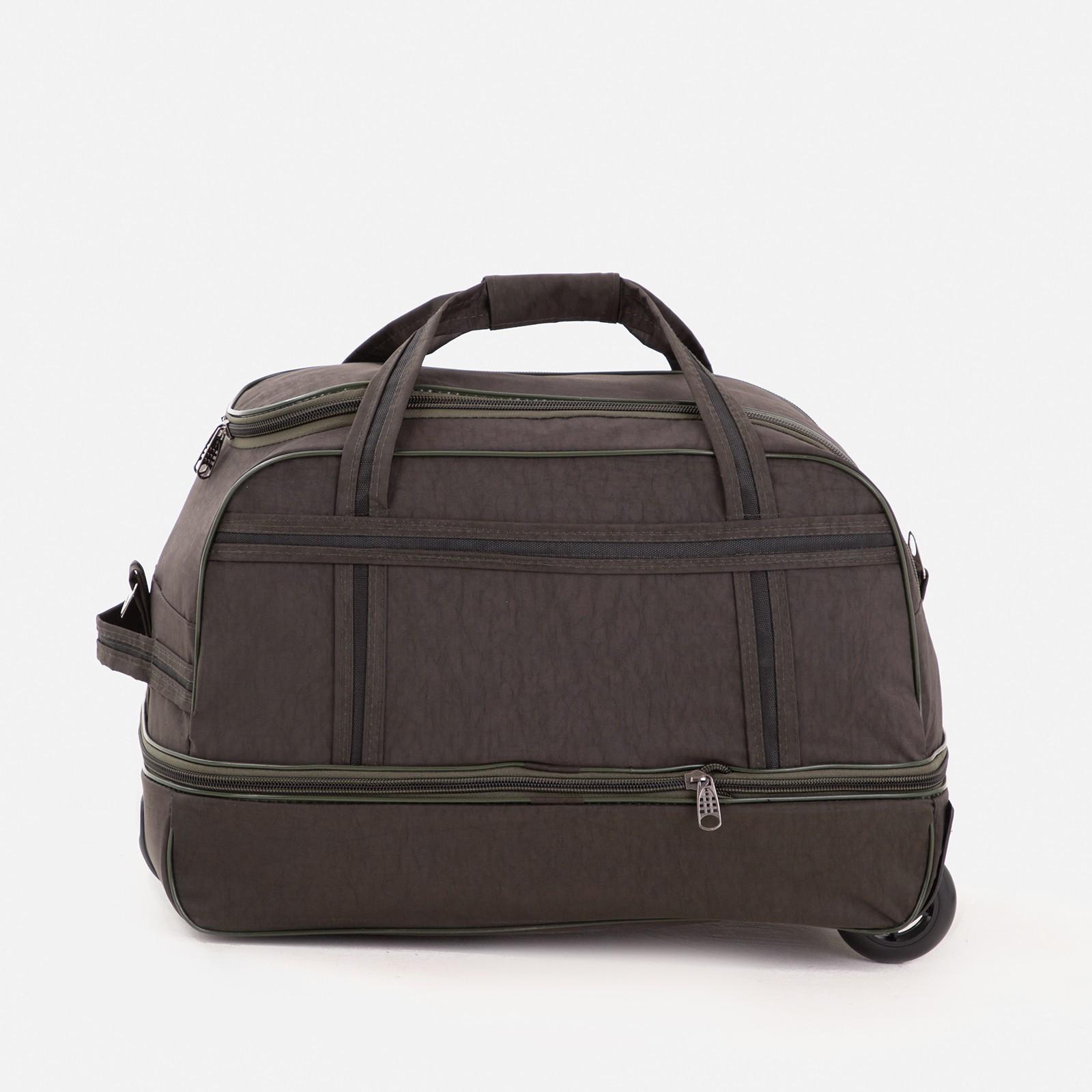 Сумка дорожная на колёсах, отдел на молнии, с увеличением, наружный карман, цвет темно зелёный