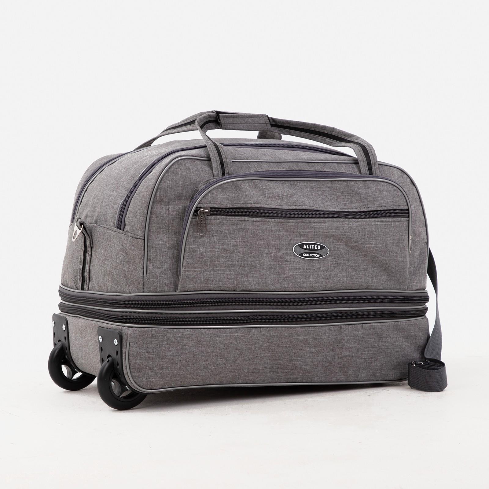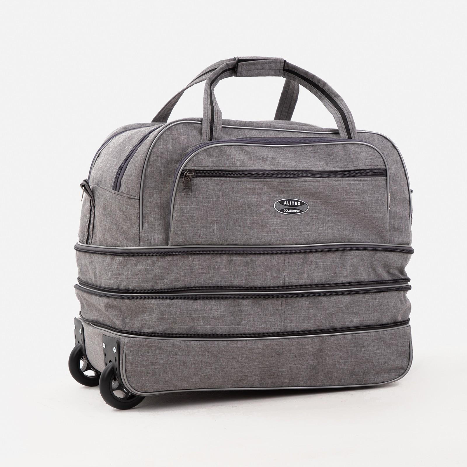 Сумка дорожная на колёсах, отдел на молнии, с увеличением, наружный карман, цвет серый/чёрный