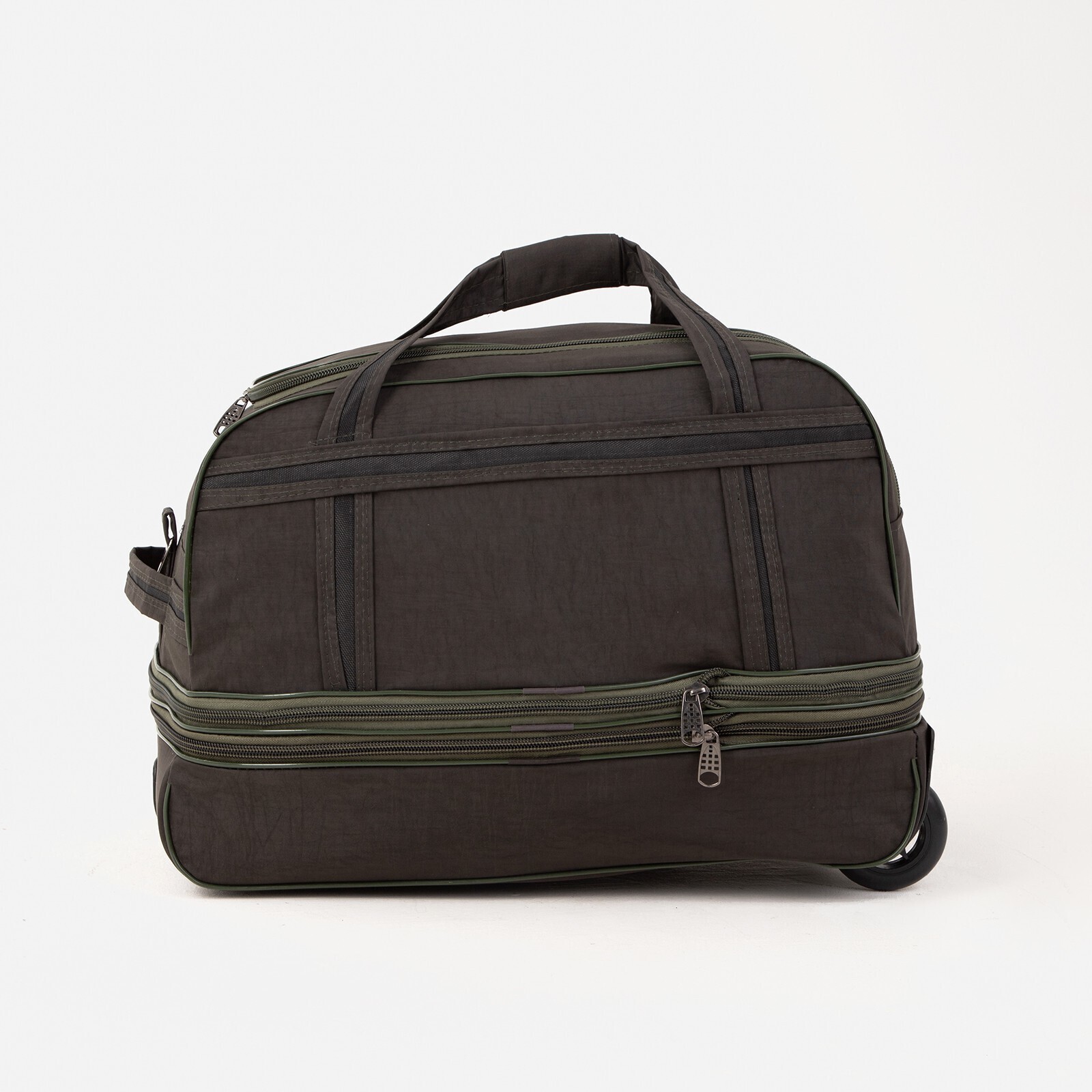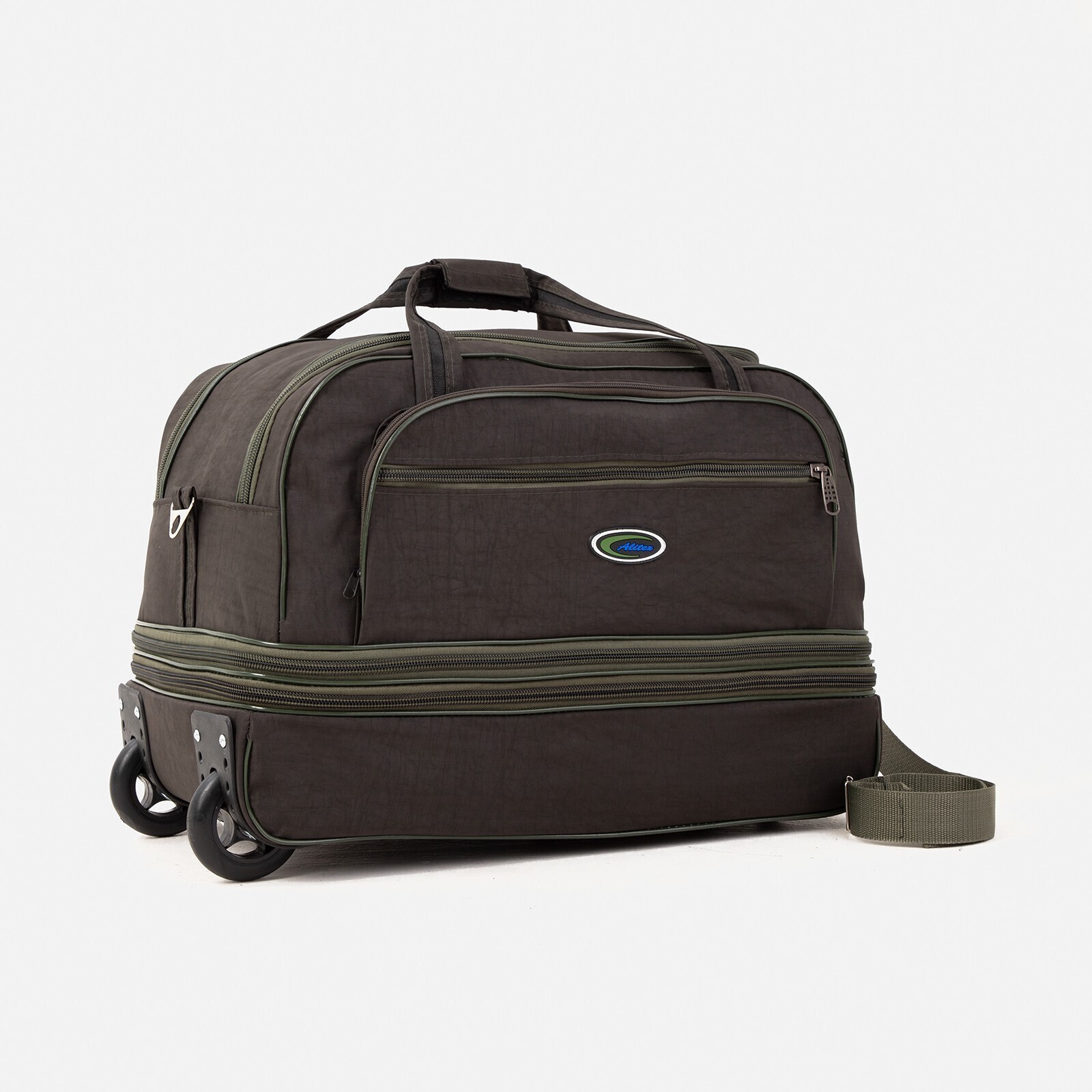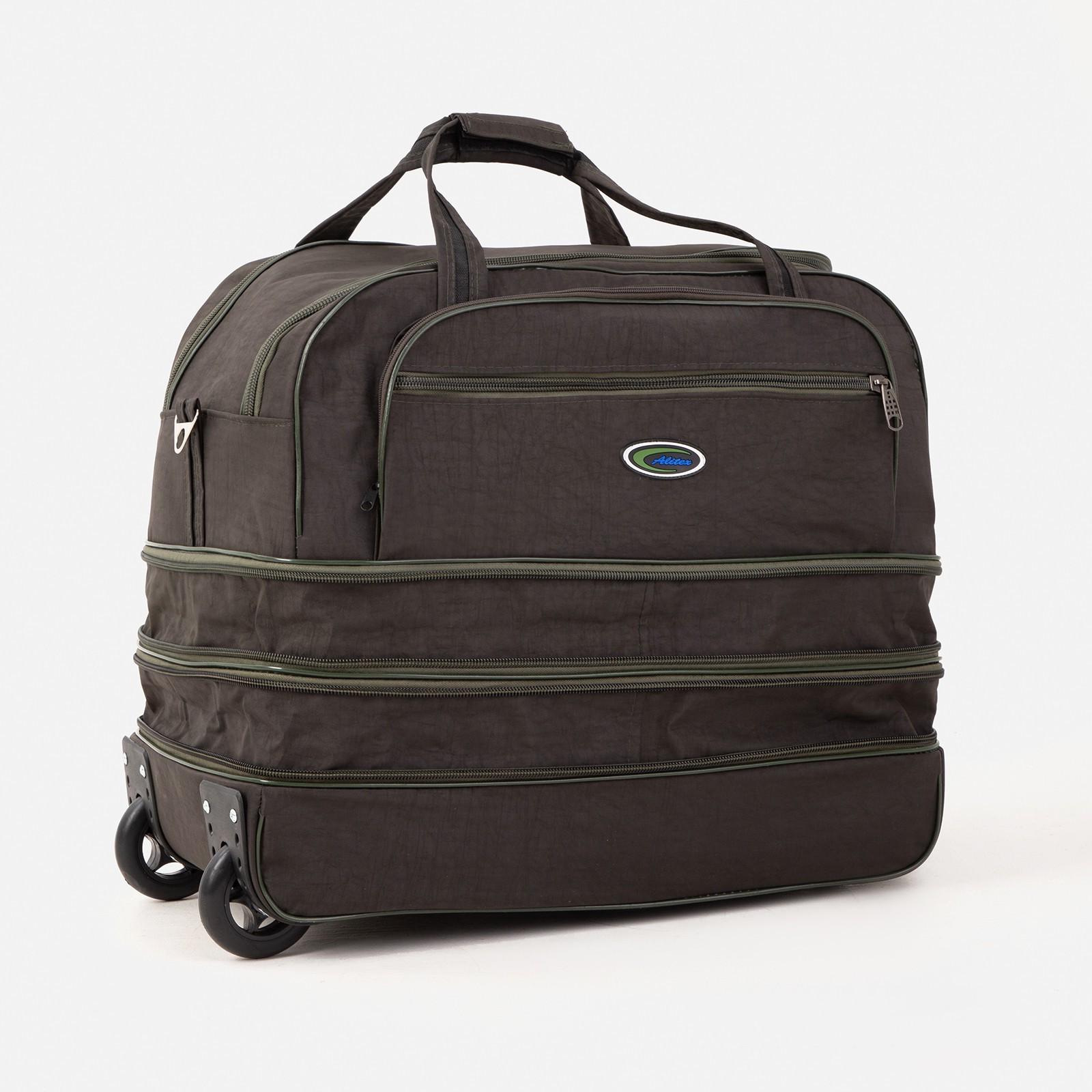 Сумка дорожная на колёсах, отдел на молнии, с увеличением, наружный карман, длинный ремень, цвет темно зеленый
