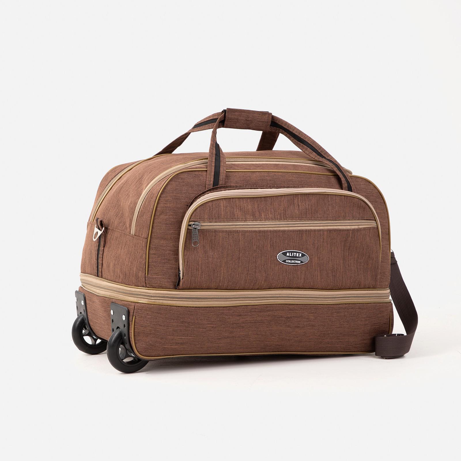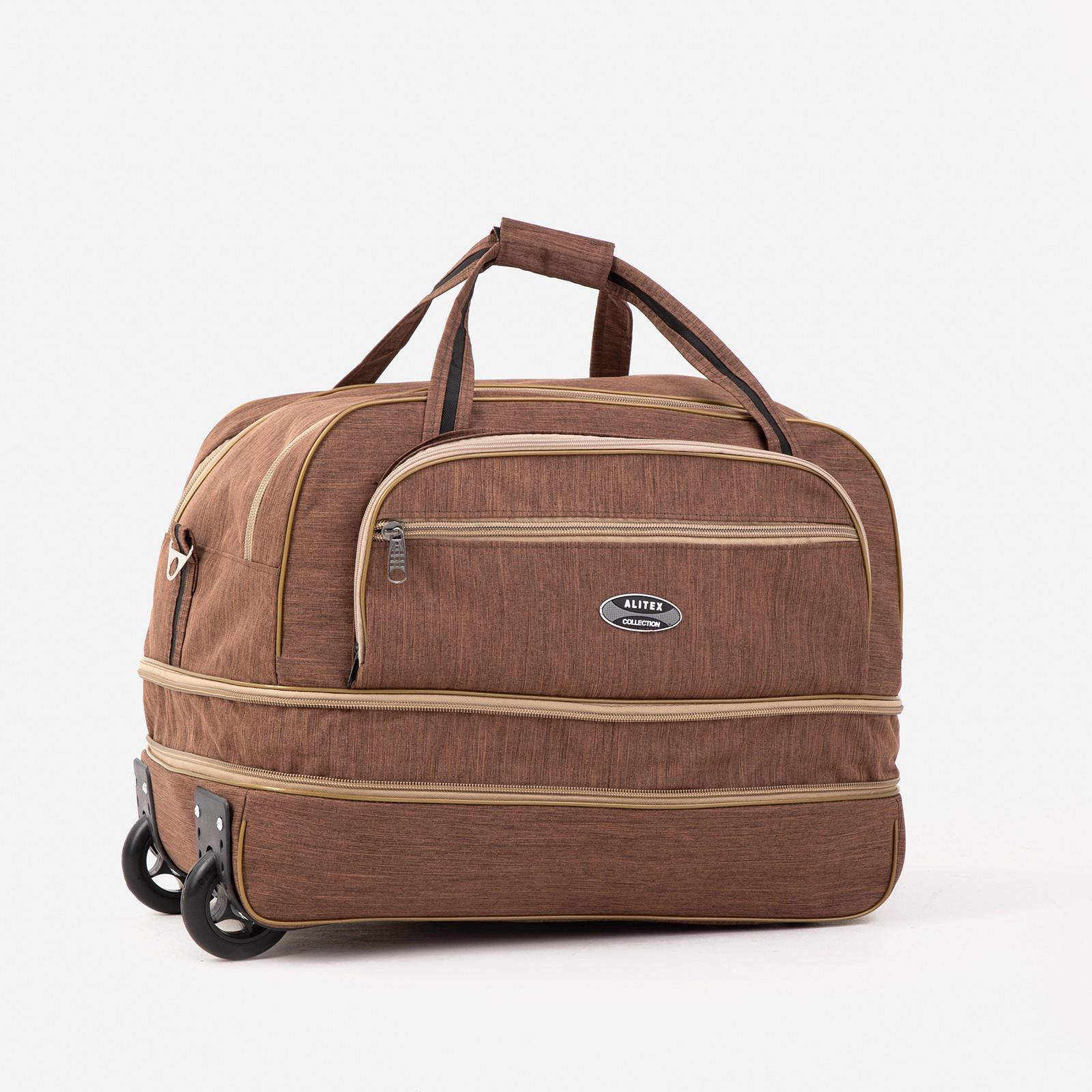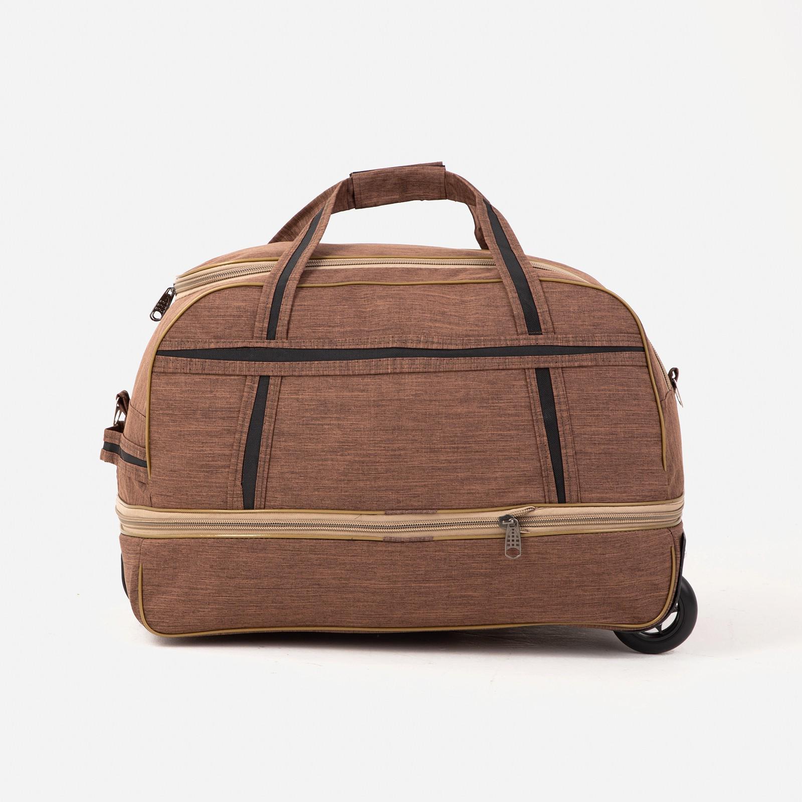 Сумка дорожная на колёсах, отдел на молнии, с увеличением, наружный карман, цвет коричневый