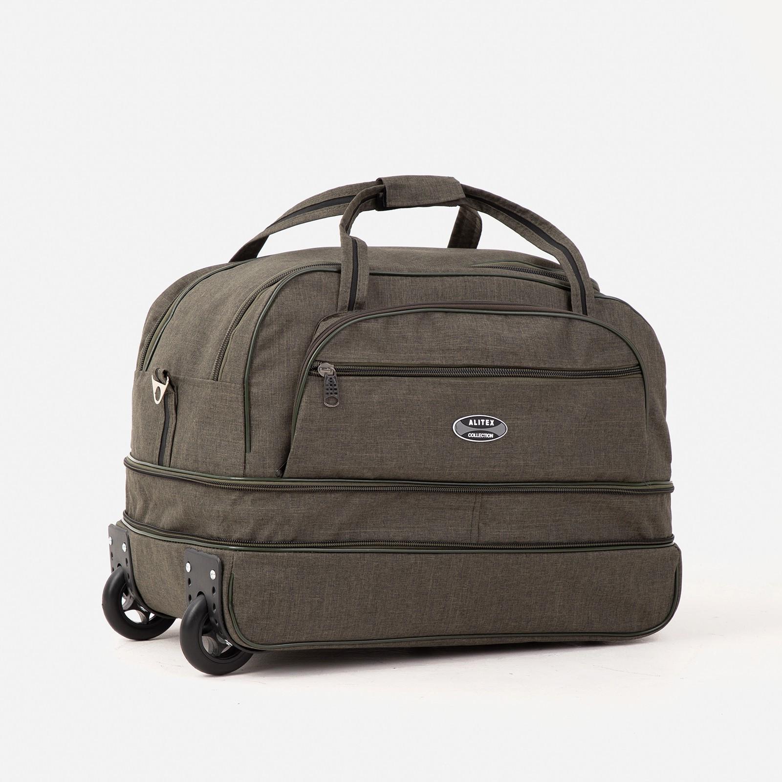 Сумка дорожная на колёсах, отдел на молнии, с увеличением, наружный карман, цвет темно зелёный