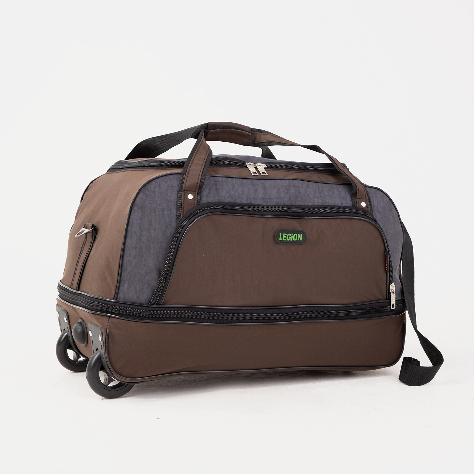 Сумка дорожная на колёсах, отдел на молнии, с увеличением, наружный карман, цвет коричневый/серый