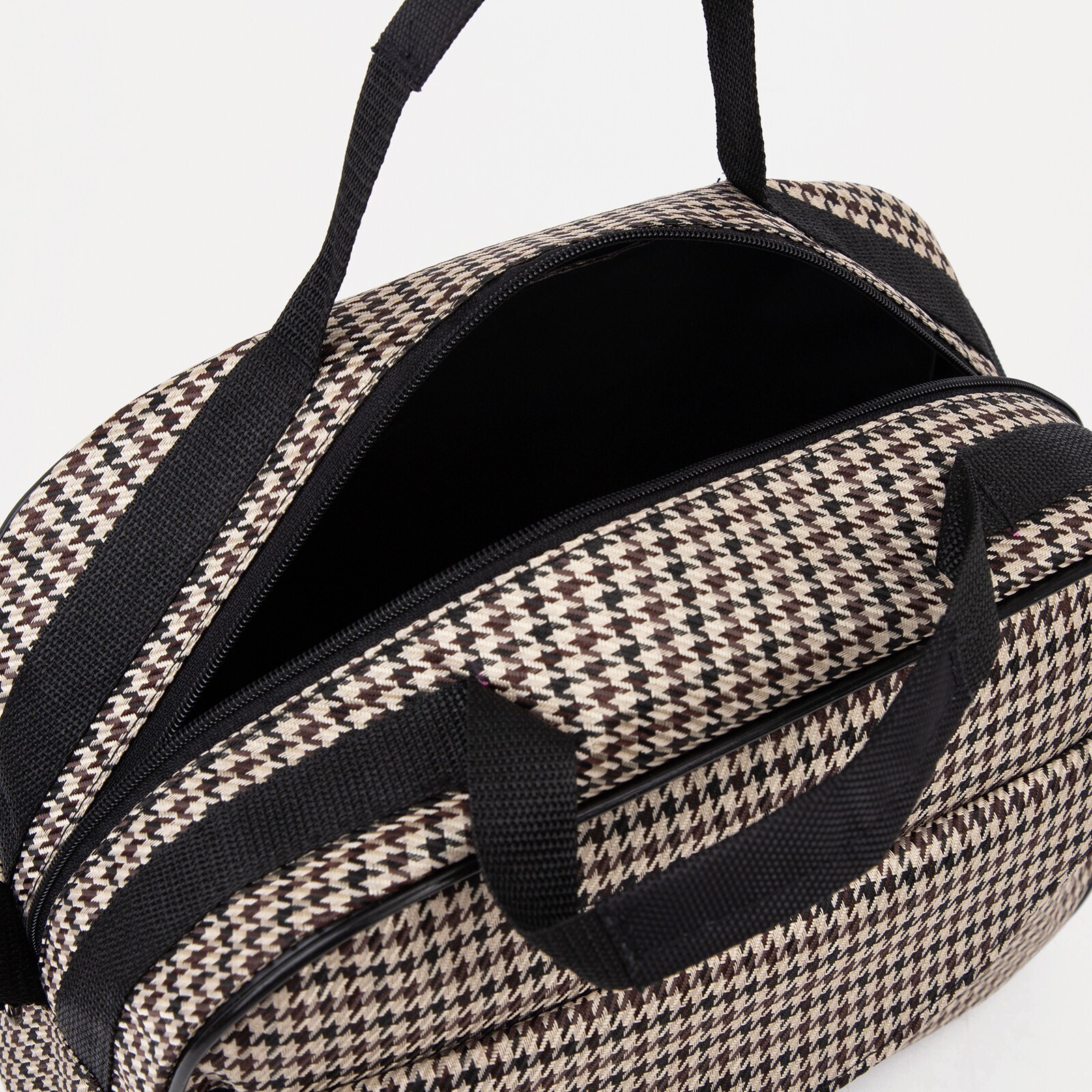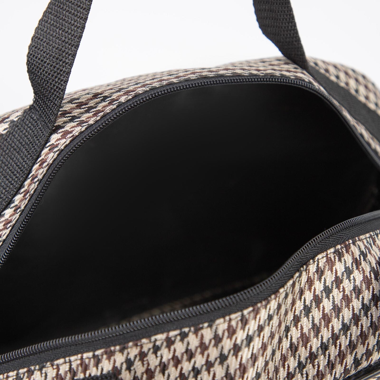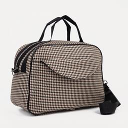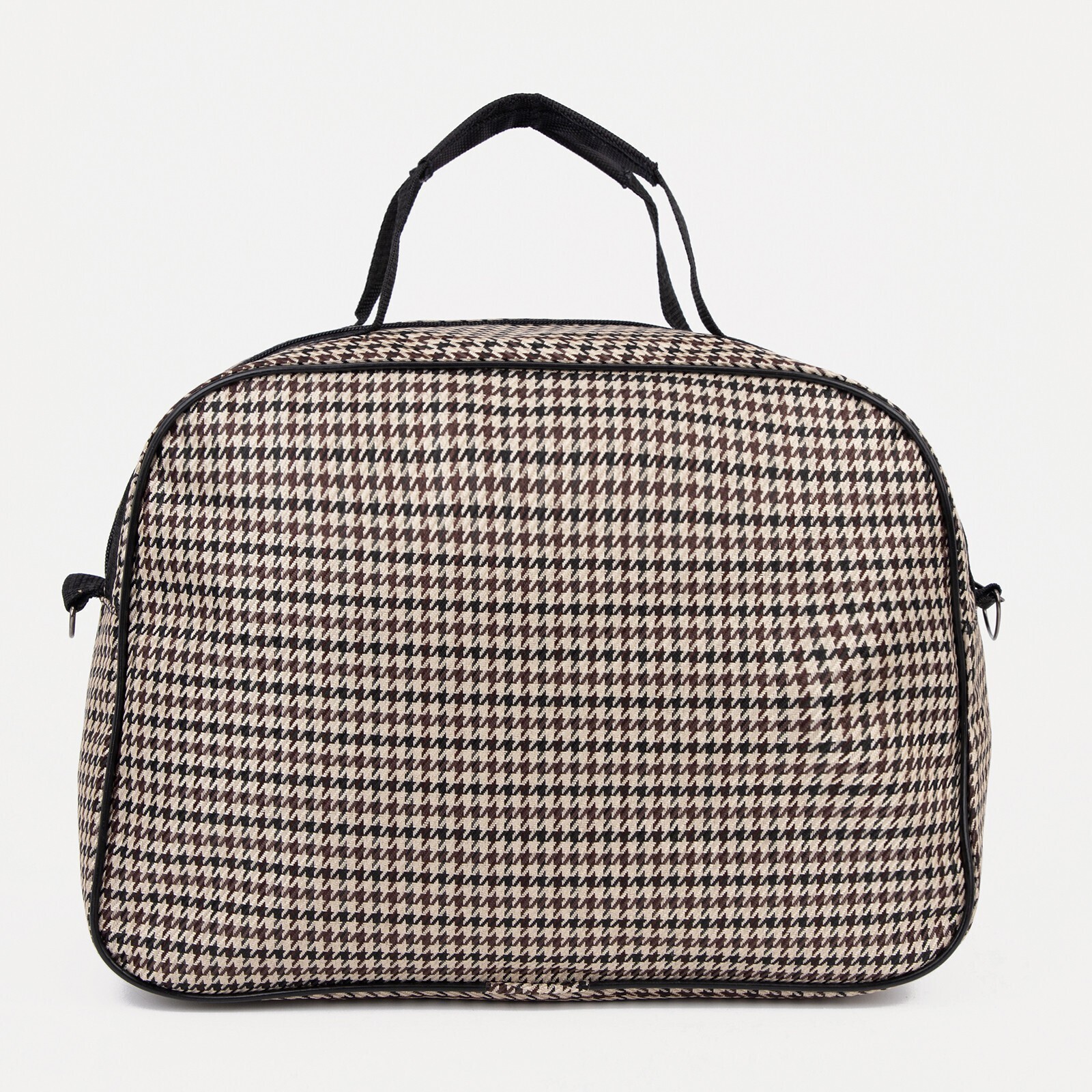 Сумка дорожная на молнии, наружный карман, длинный ремень, цвет чёрный/бежевый
