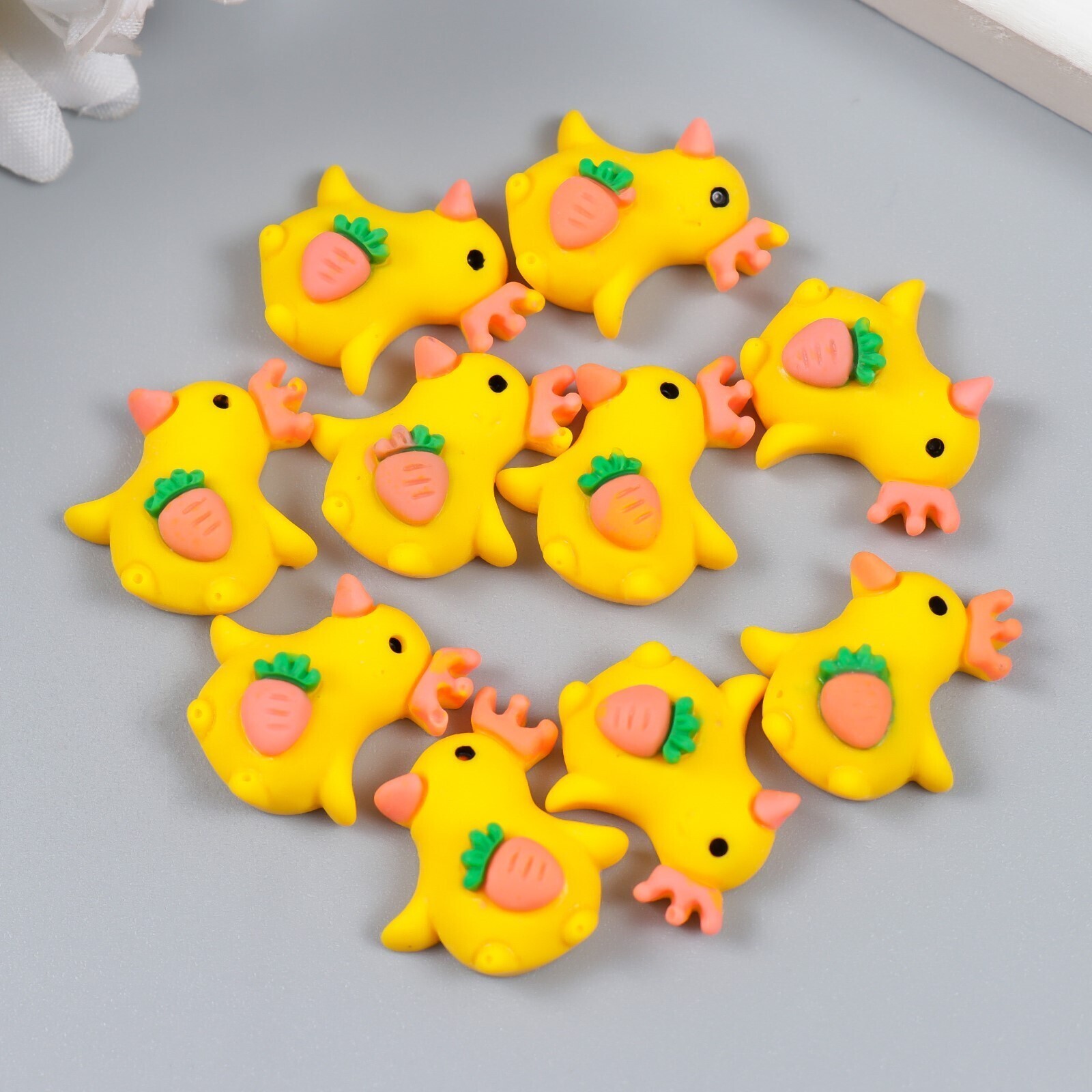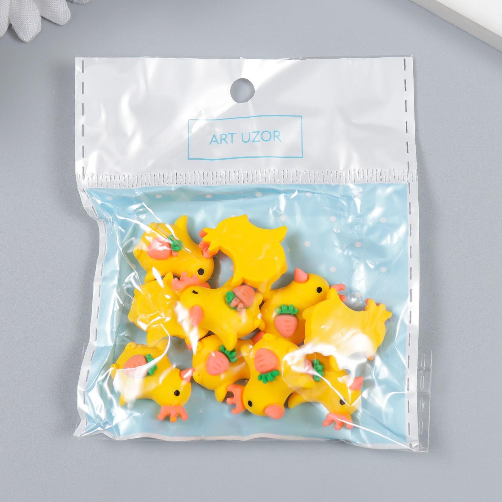 Декор для творчества пластик "Цыплёнок с морковкой" 1,5х1 см