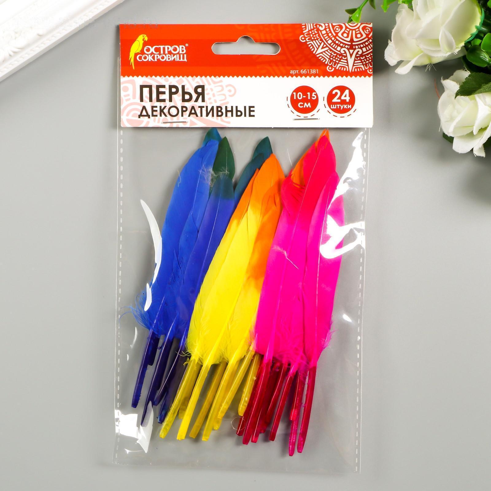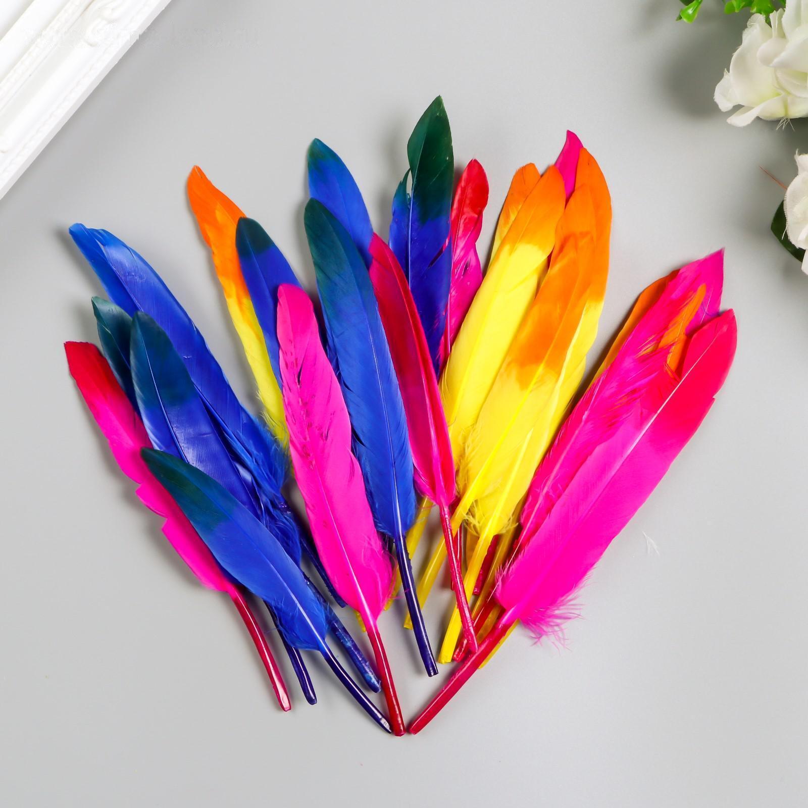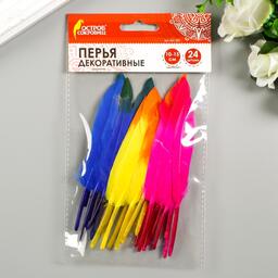 Перья декоративные прямые, 10-15 см (набор 24 шт) 6 цветов, двухцветные, ассорти