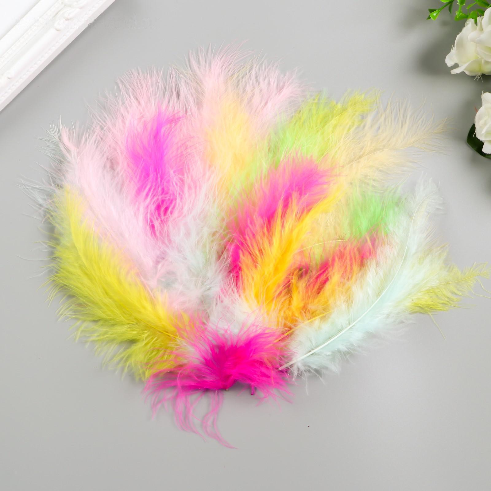 Перья декоративные страусиные, 10-12 см (набор 24 шт) 6 цветов, пастель, ассорти