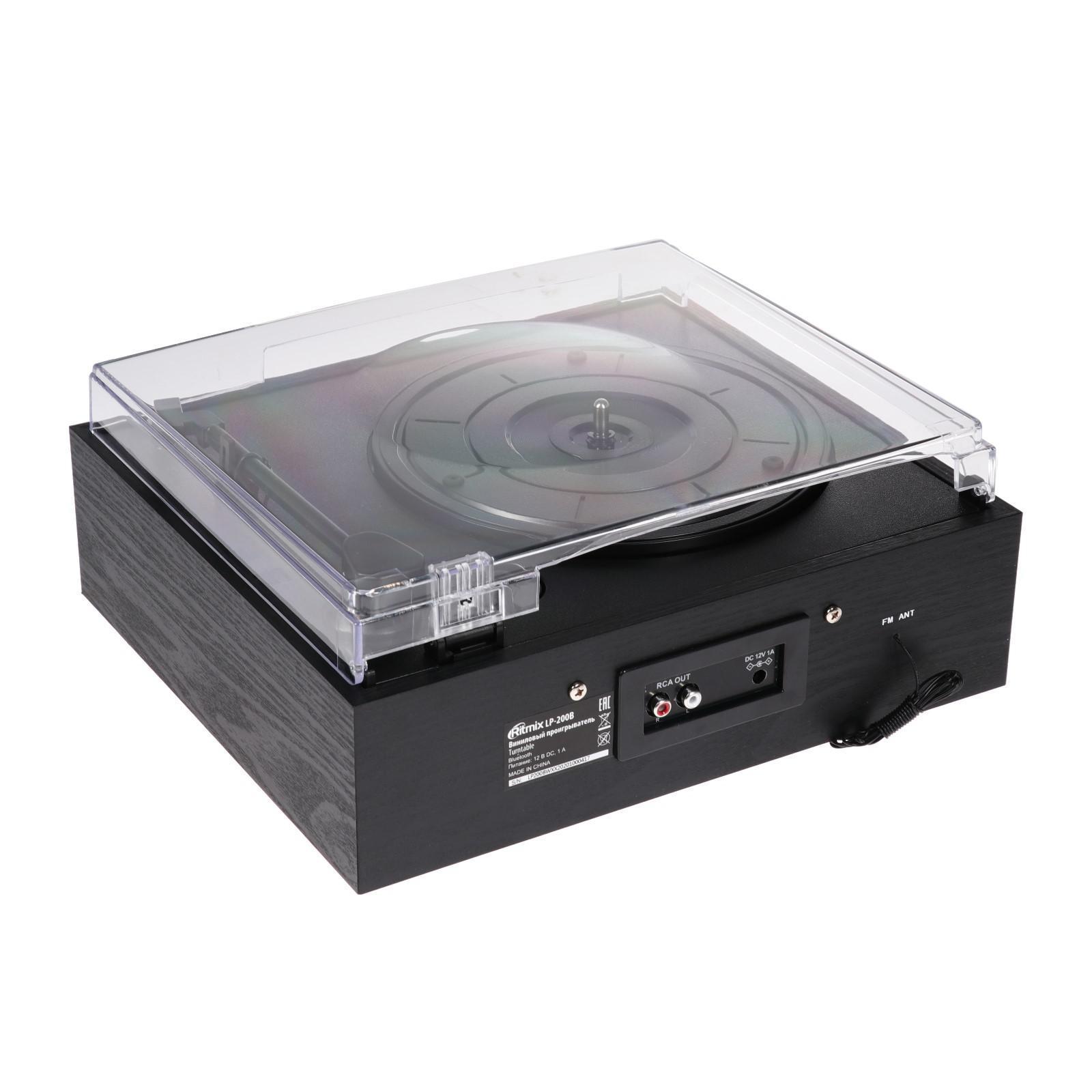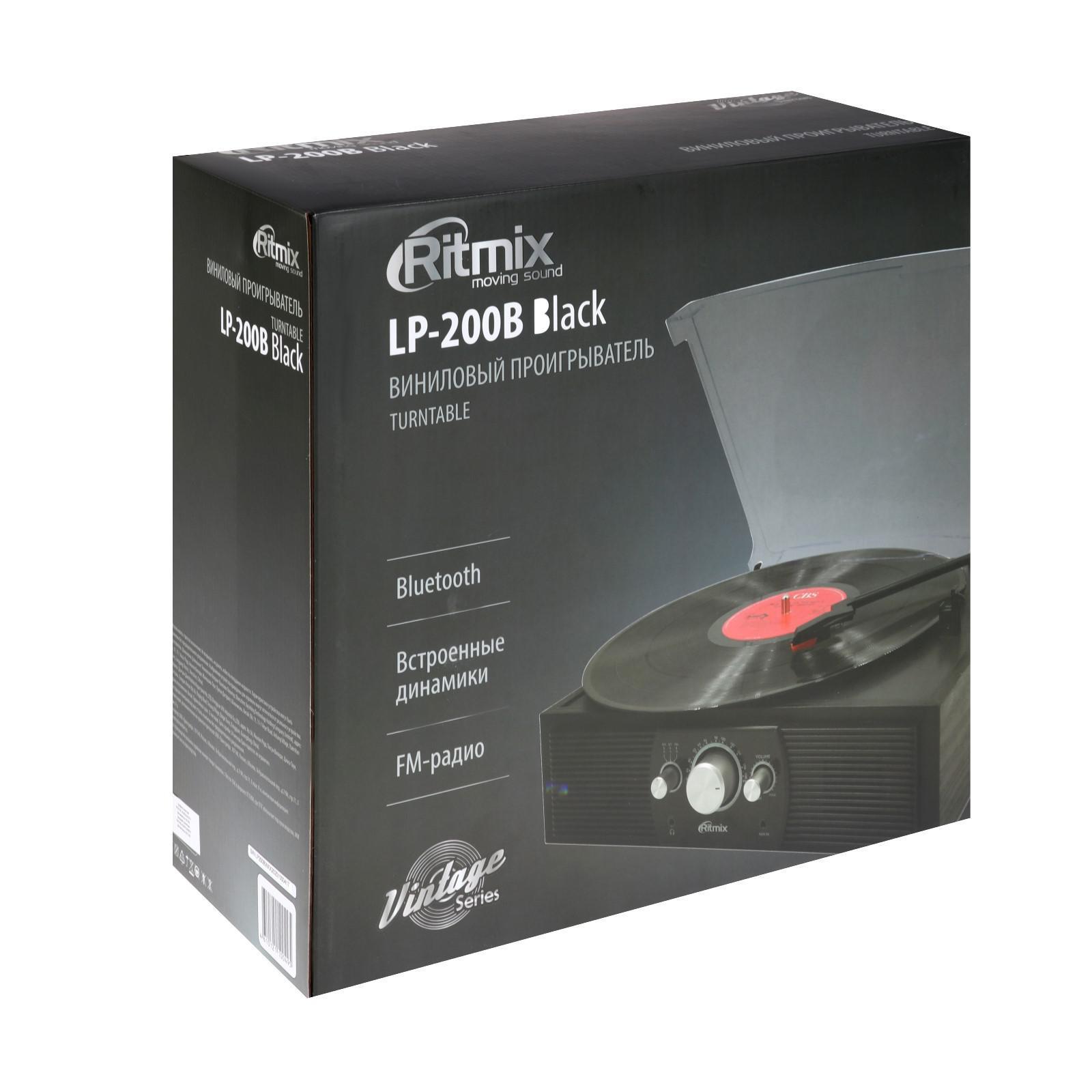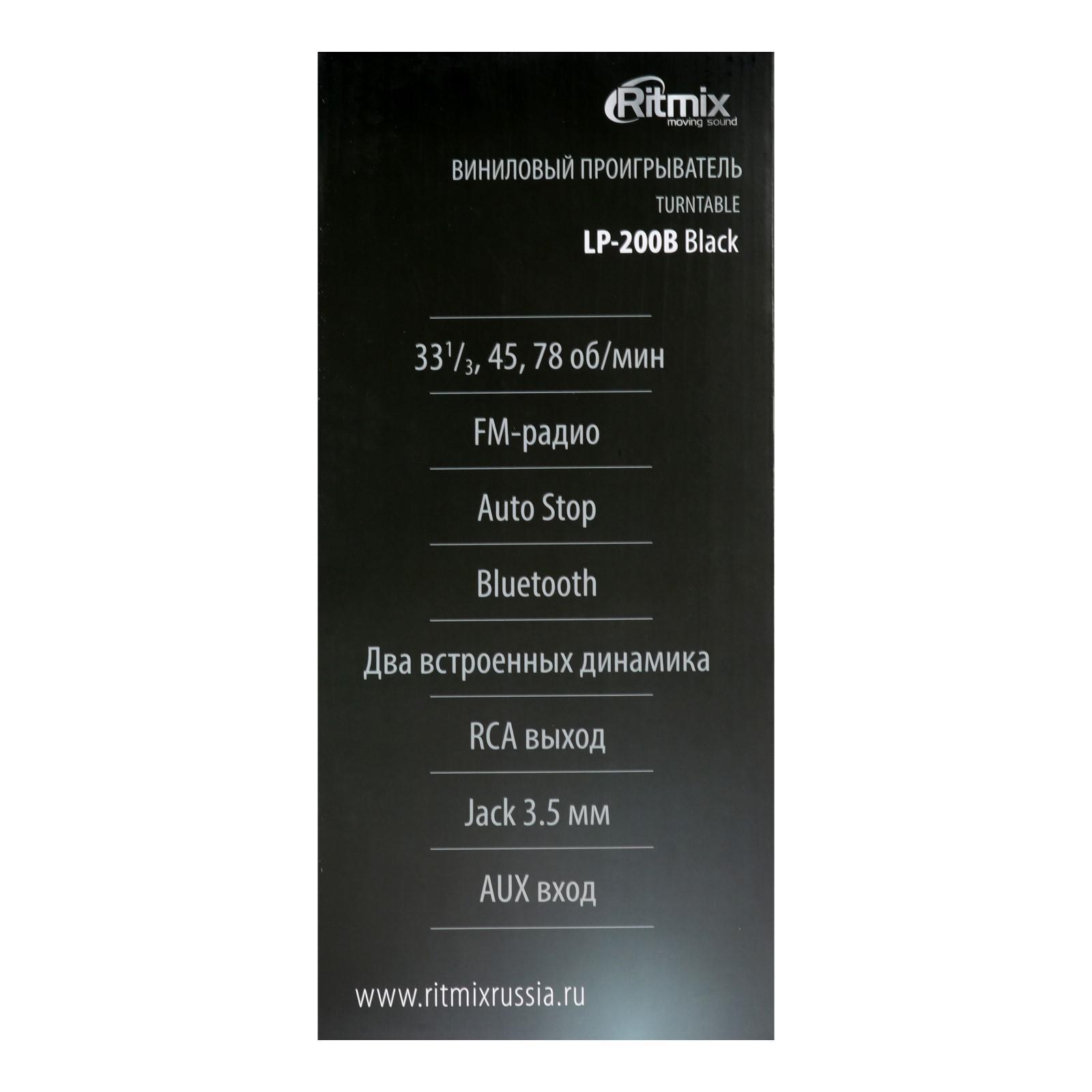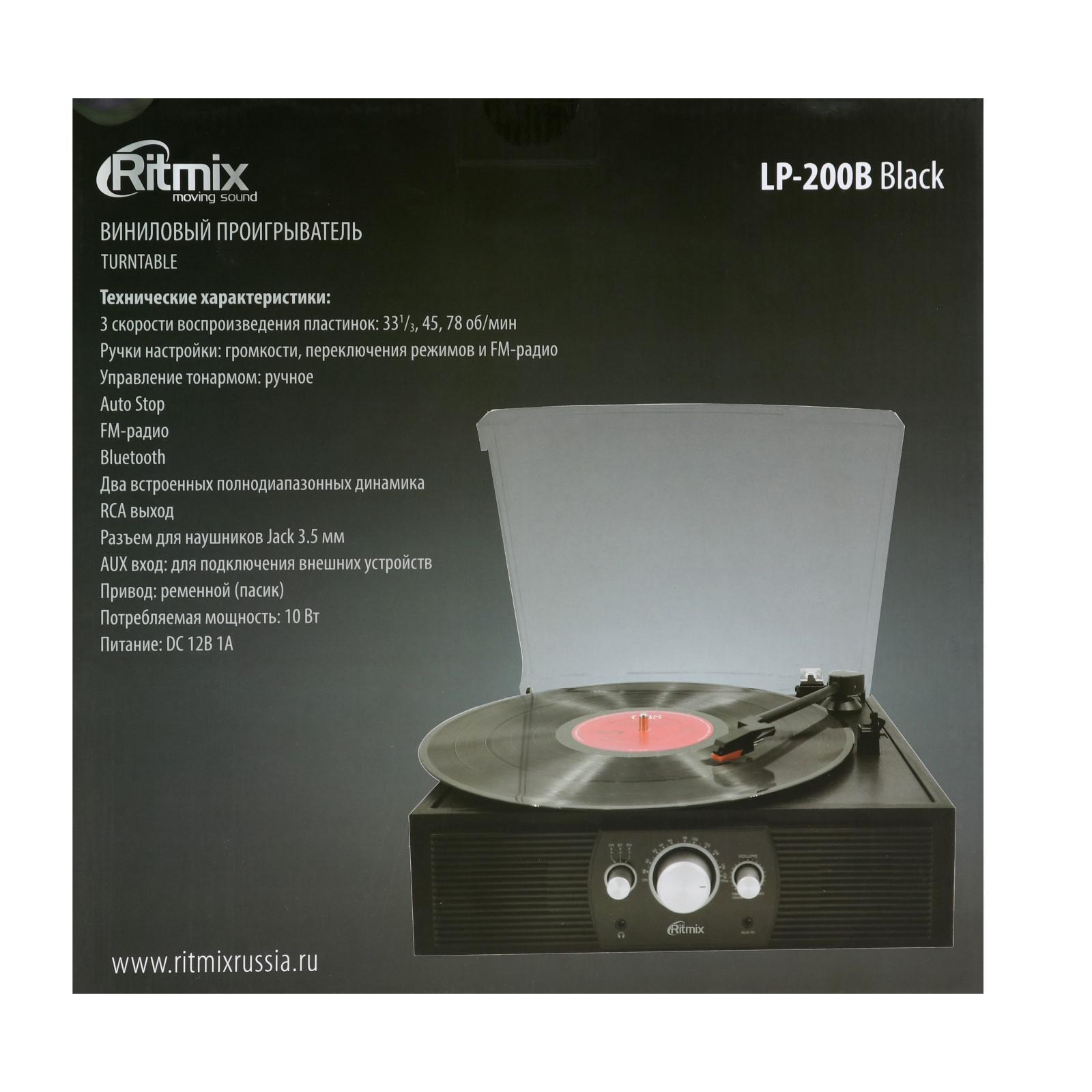 Проигрыватель виниловых дисков Ritmix LP-200B, 10 Вт, 3 скорости, BT, AUX, FM, RCA, черный