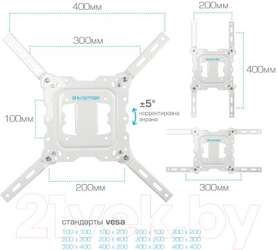 • Поддерживаемый стандарт VESA 100×100, 200×200, 300×300, 400×400, 200×100, 400×200, 300×200, 400×300