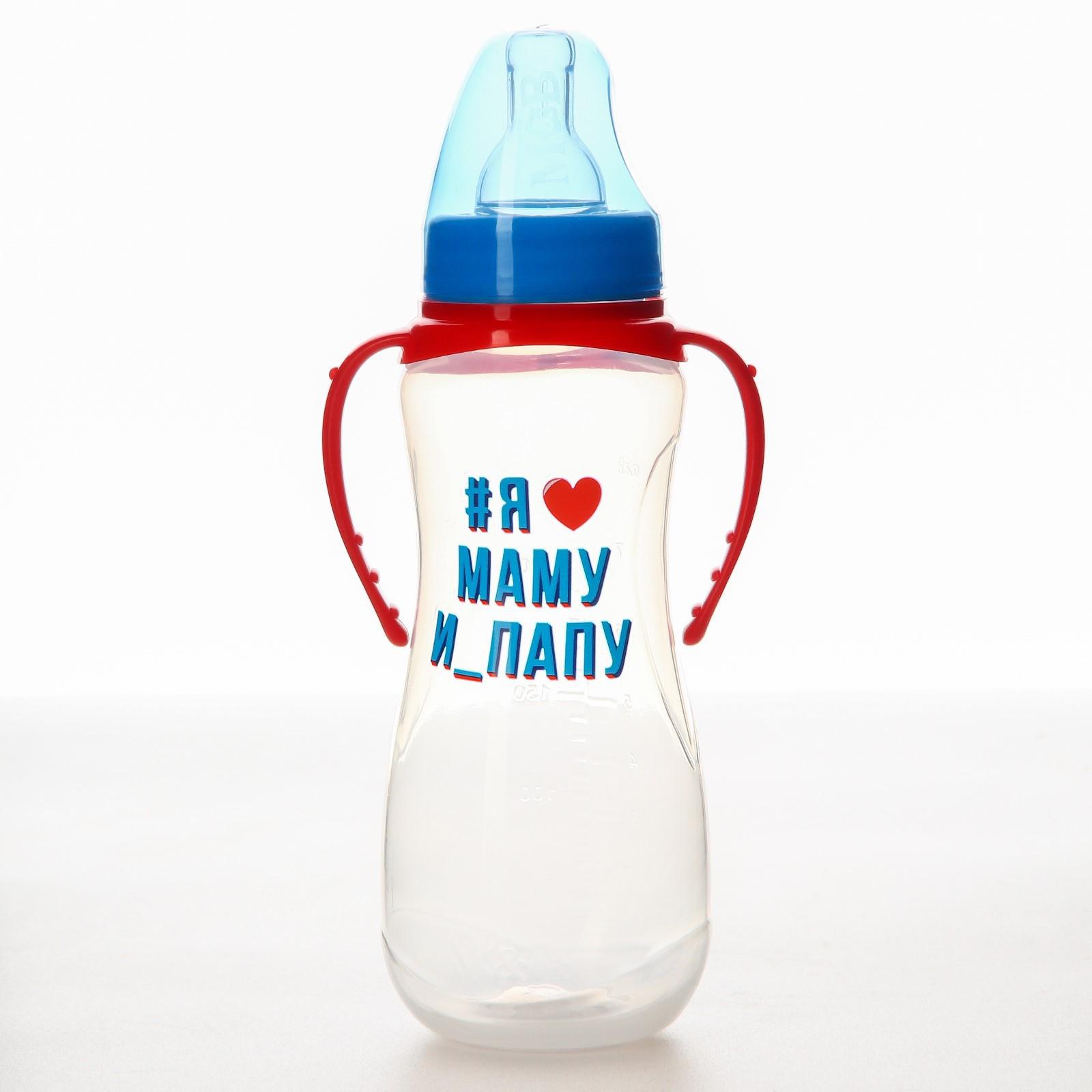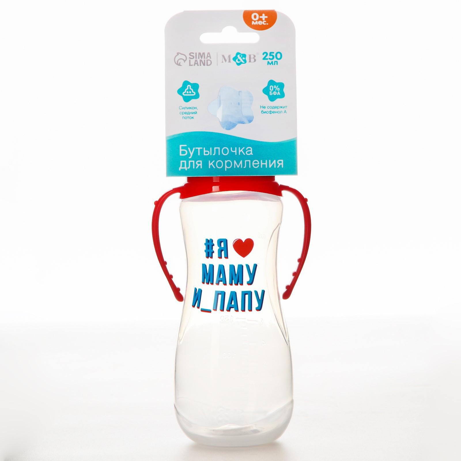 Бутылочка для кормления «Люблю маму и папу» 250 мл приталенная, с ручками