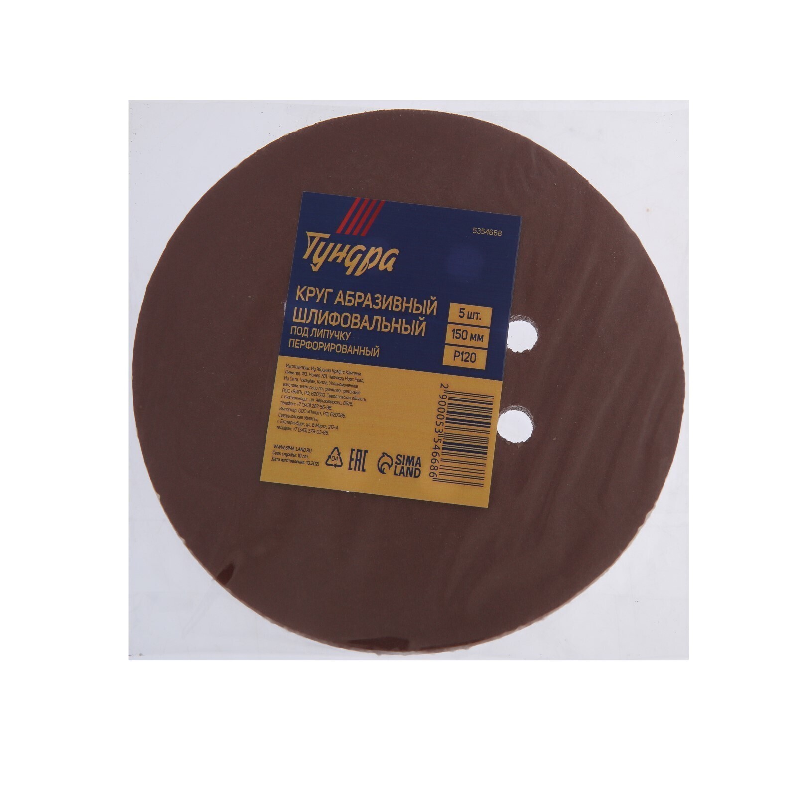 Круг абразивный шлифовальный под "липучку" ТУНДРА, перфорированный, 150 мм, Р120, 5 шт.