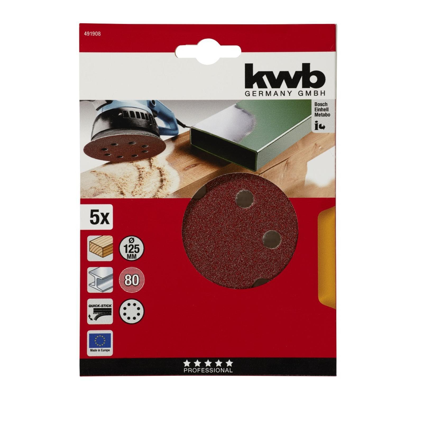 Круг шлифовальный KWB, d=125 мм, К80, липучка, 5 шт