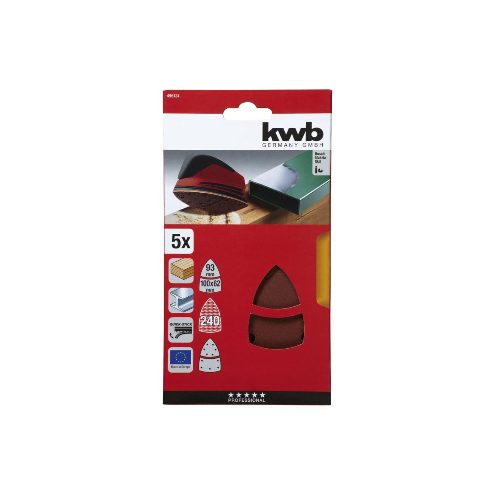 Шлифлист для дельташлифмашины KWB, 100x62.93 мм, К240, 5 шт.