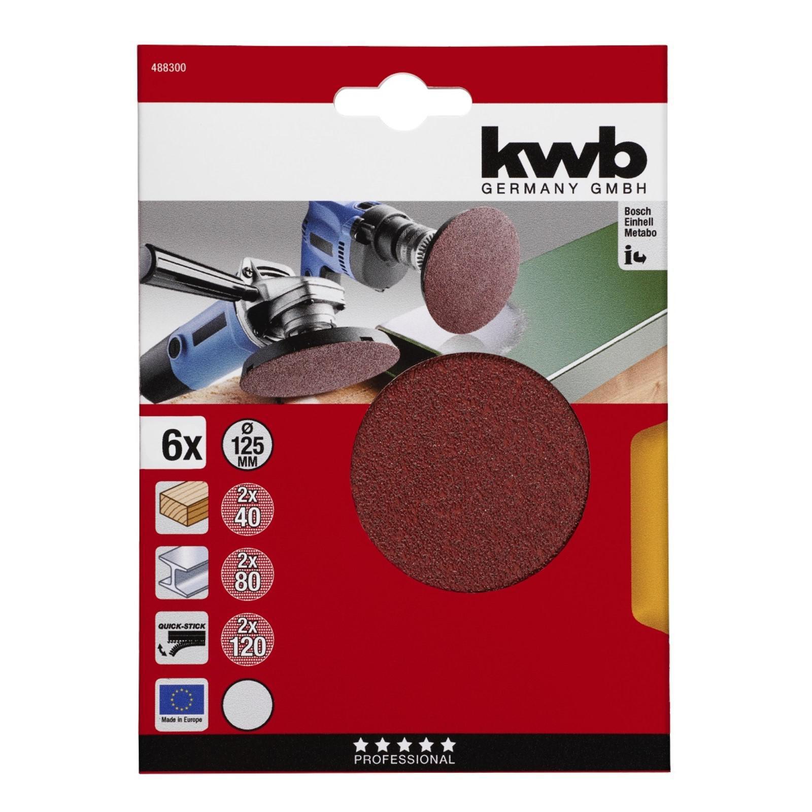 Круг шлифовальный KWB, d=125 мм; 2хК40/2хК80/2хК120, липучка, оксид алюминия, 6 шт