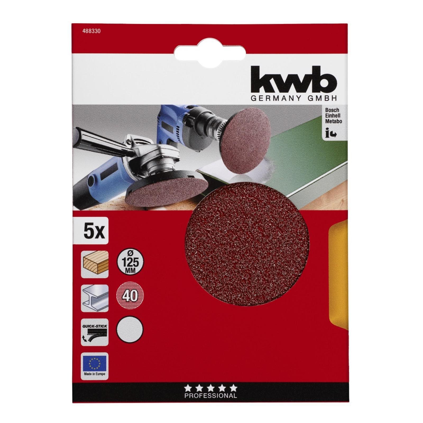 Круг шлифовальный KWB, d=125 мм, К40, липучка, оксид алюминия, 5 шт