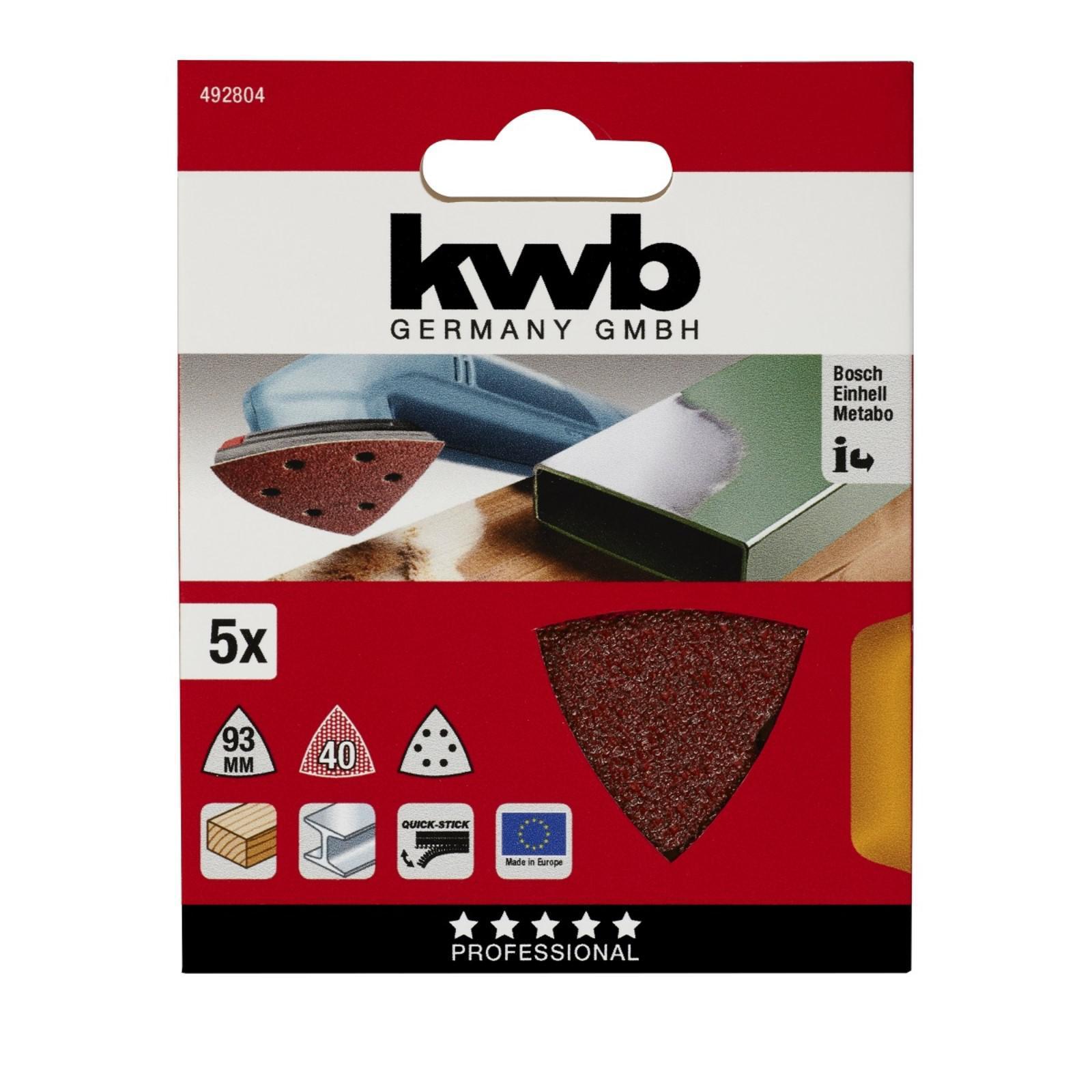 Треугольник шлифовальный KWB DELTA, 93х93х93 мм, К40, оксид алюминия, липучка, 5 шт