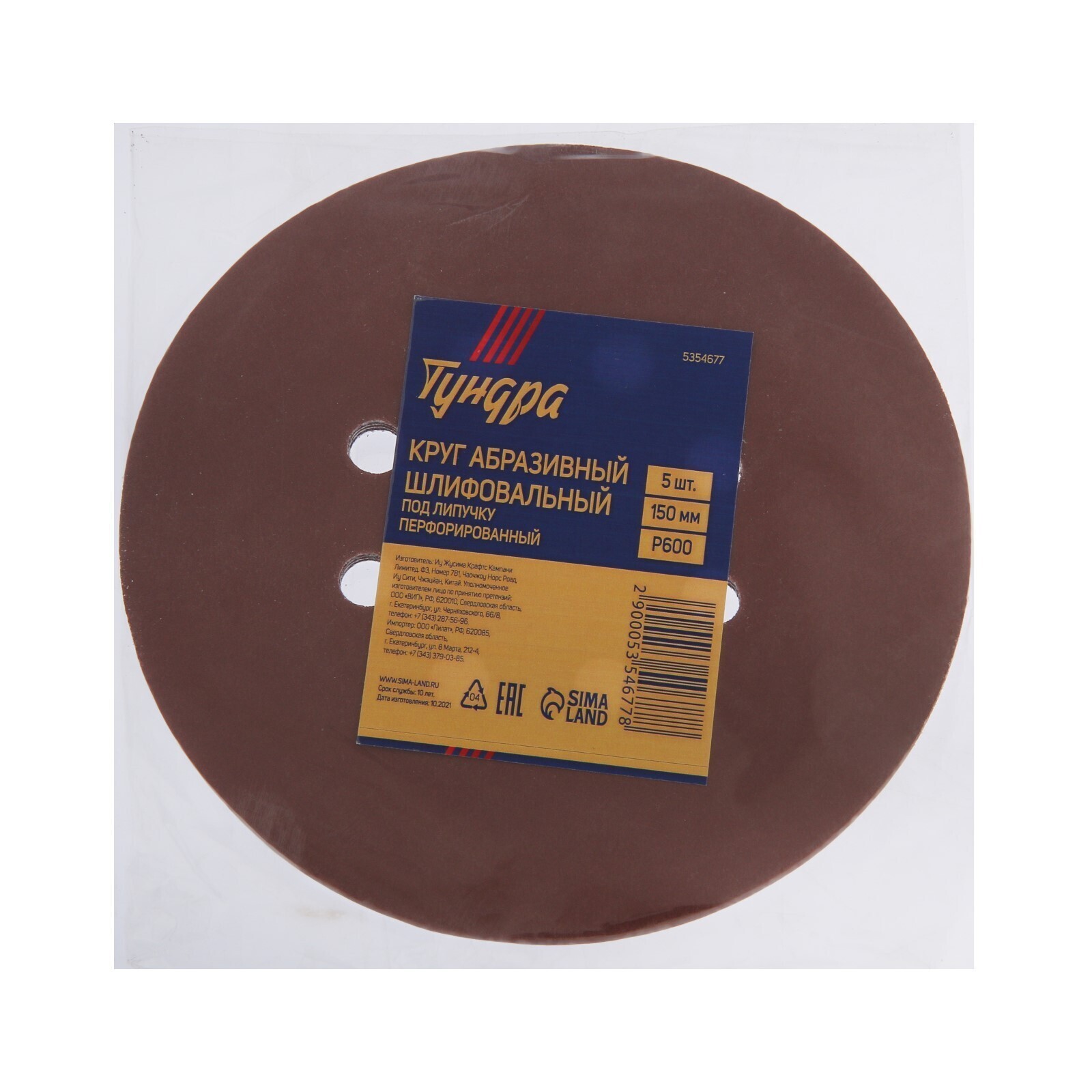 Круг абразивный шлифовальный под "липучку" ТУНДРА, перфорированный, 150 мм, Р600, 5 шт.