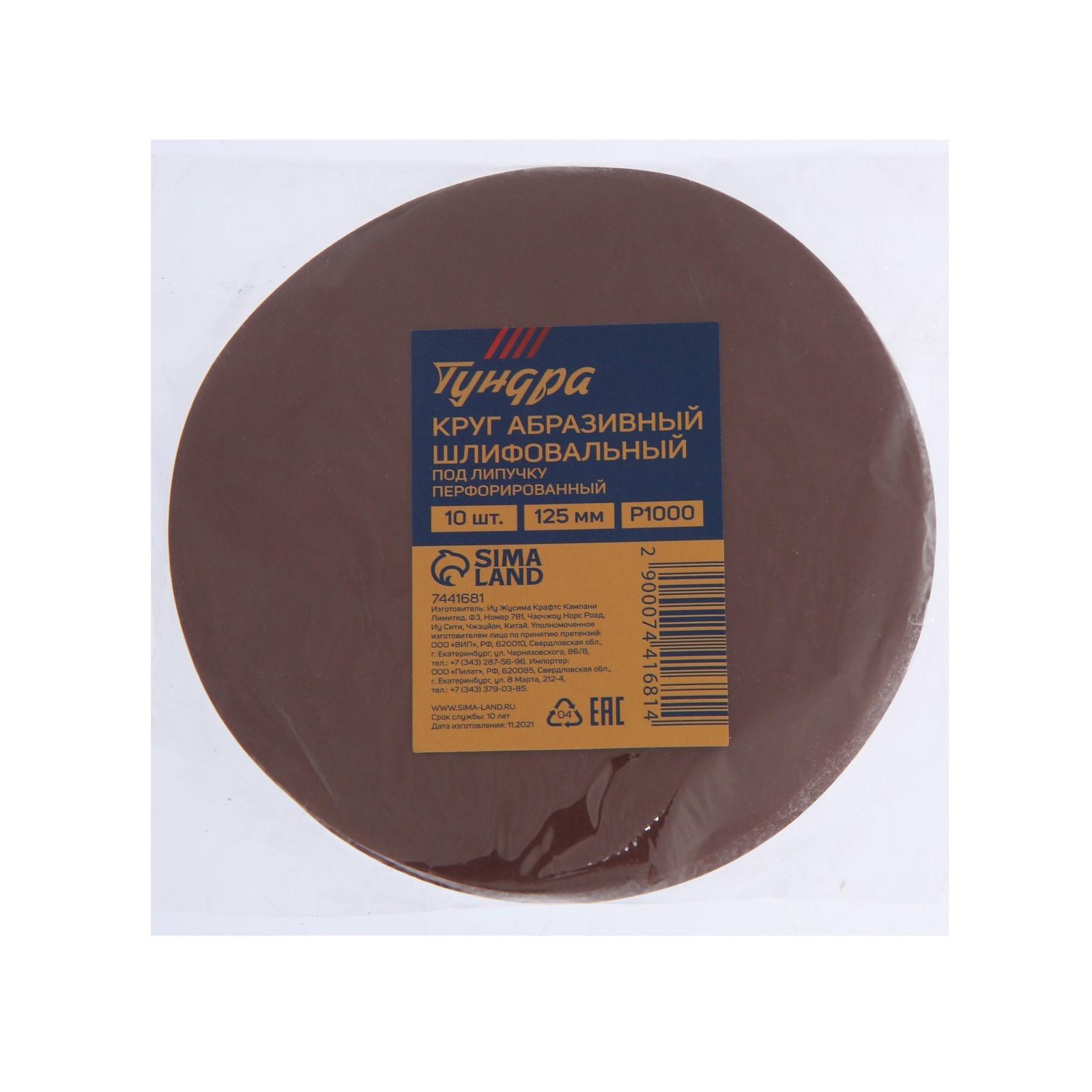Круг абразивный шлифовальный под "липучку" ТУНДРА, 125 мм, Р1000, 10 шт.