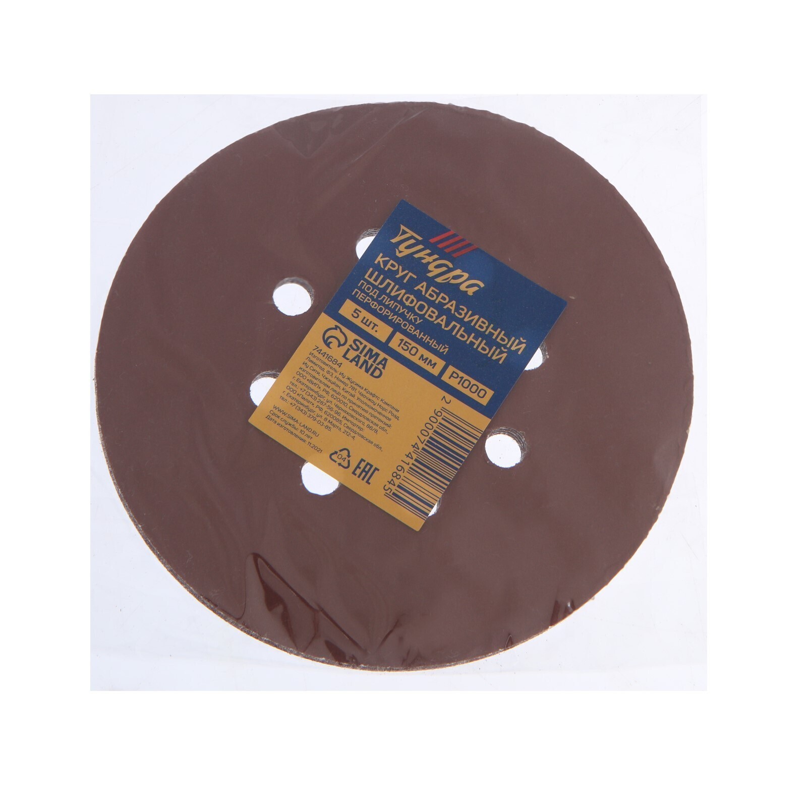 Круг абразивный шлифовальный под "липучку" ТУНДРА, перфорированный, 150 мм, Р1000, 5 шт.