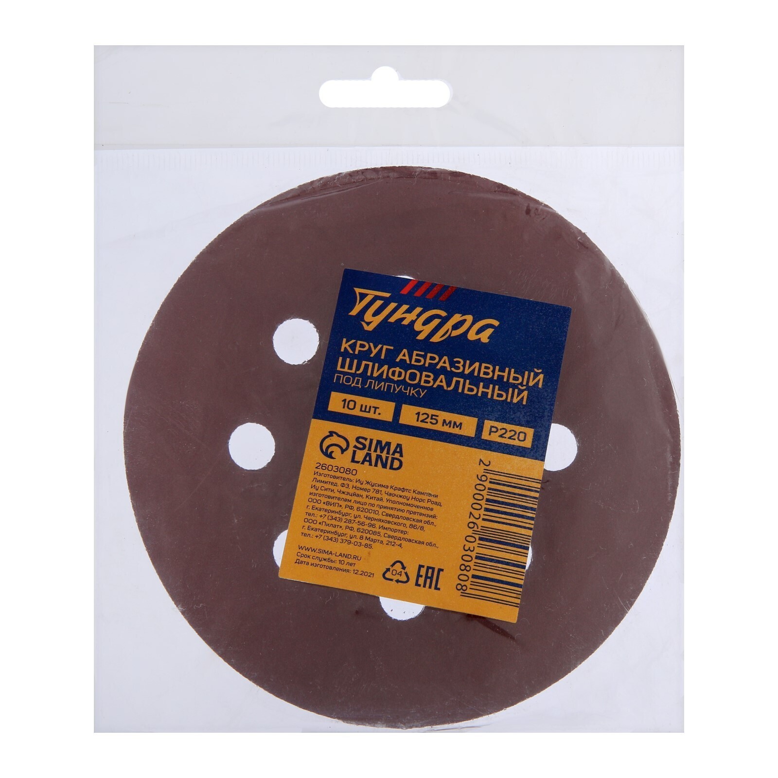 Круг абразивный шлифовальный под "липучку" ТУНДРА, перфорированный, 125 мм, Р220, 10 шт.