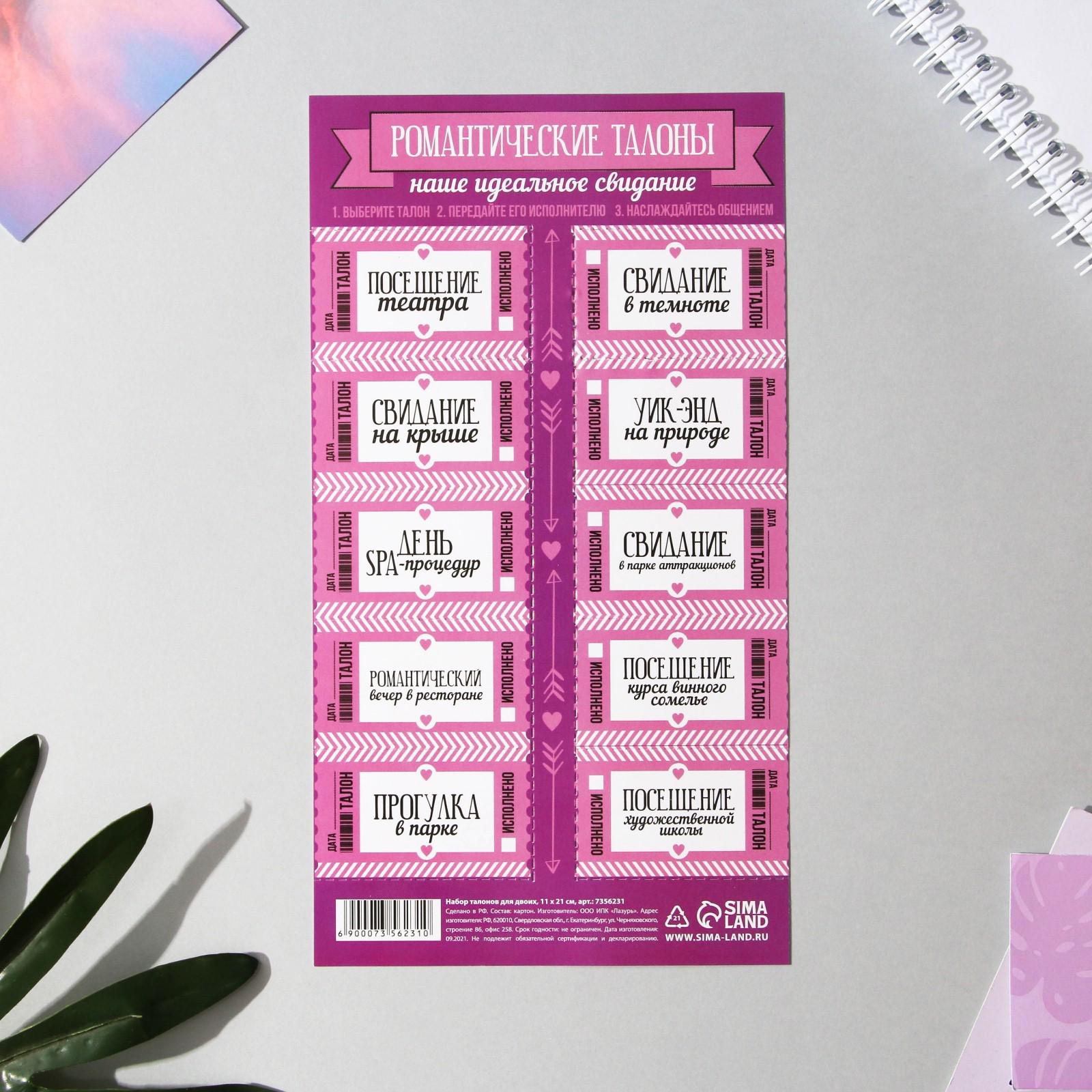 Набор талонов для двоих «Идеальное свидание», 10 талонов, 11 х 20 см