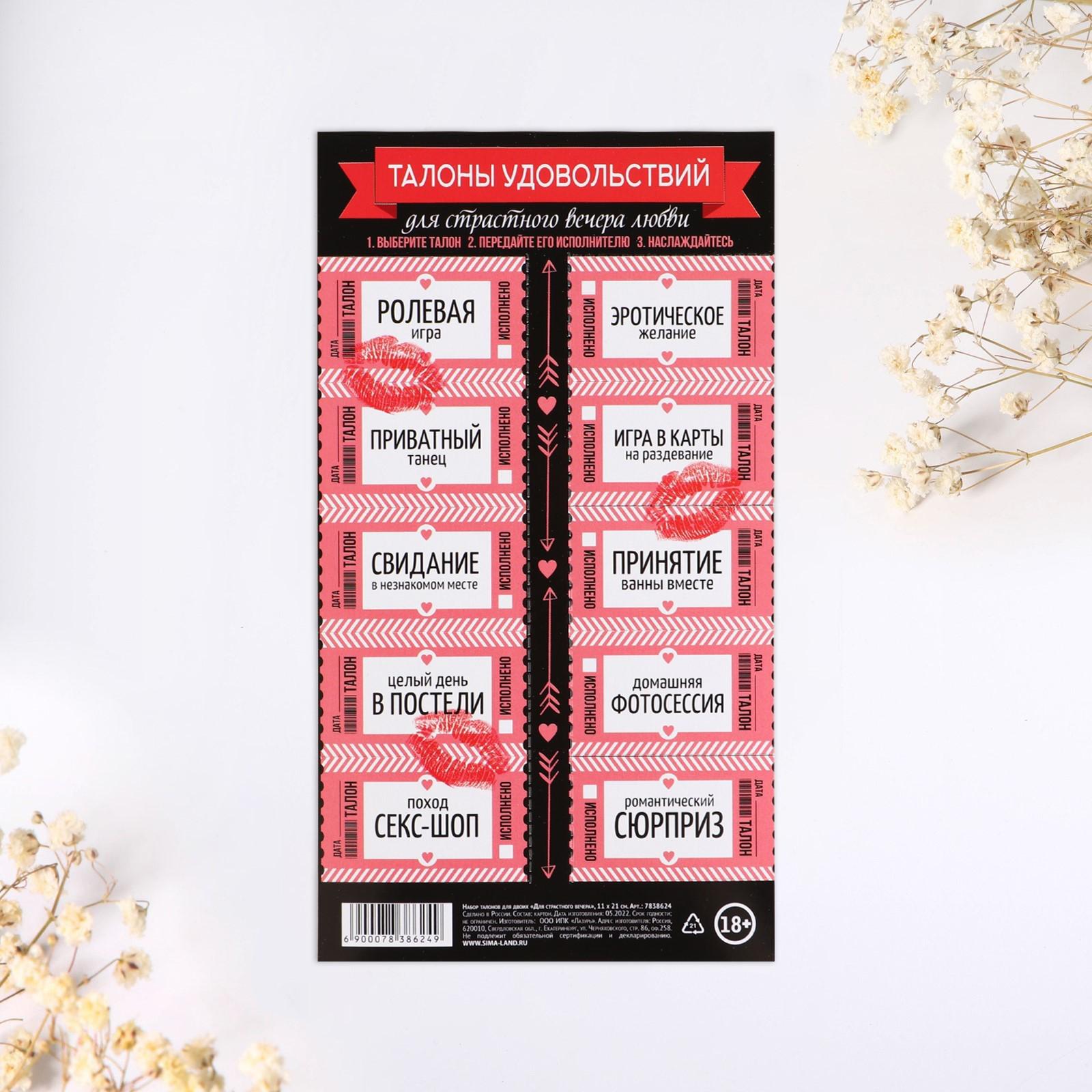 Набор талонов для двоих «Для страстного вечера», 10 талонов, 11 х 20 см