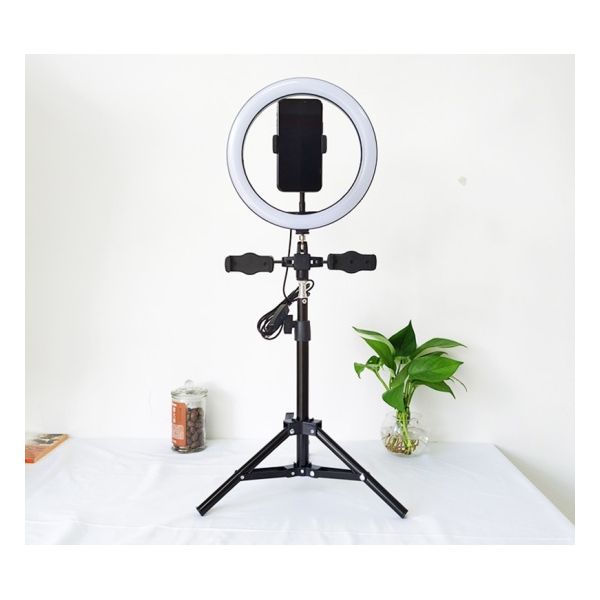 Описание товара Кольцевая лампа Fancier PSD-01K2 на настольном штативе с тремя держателями смартфона