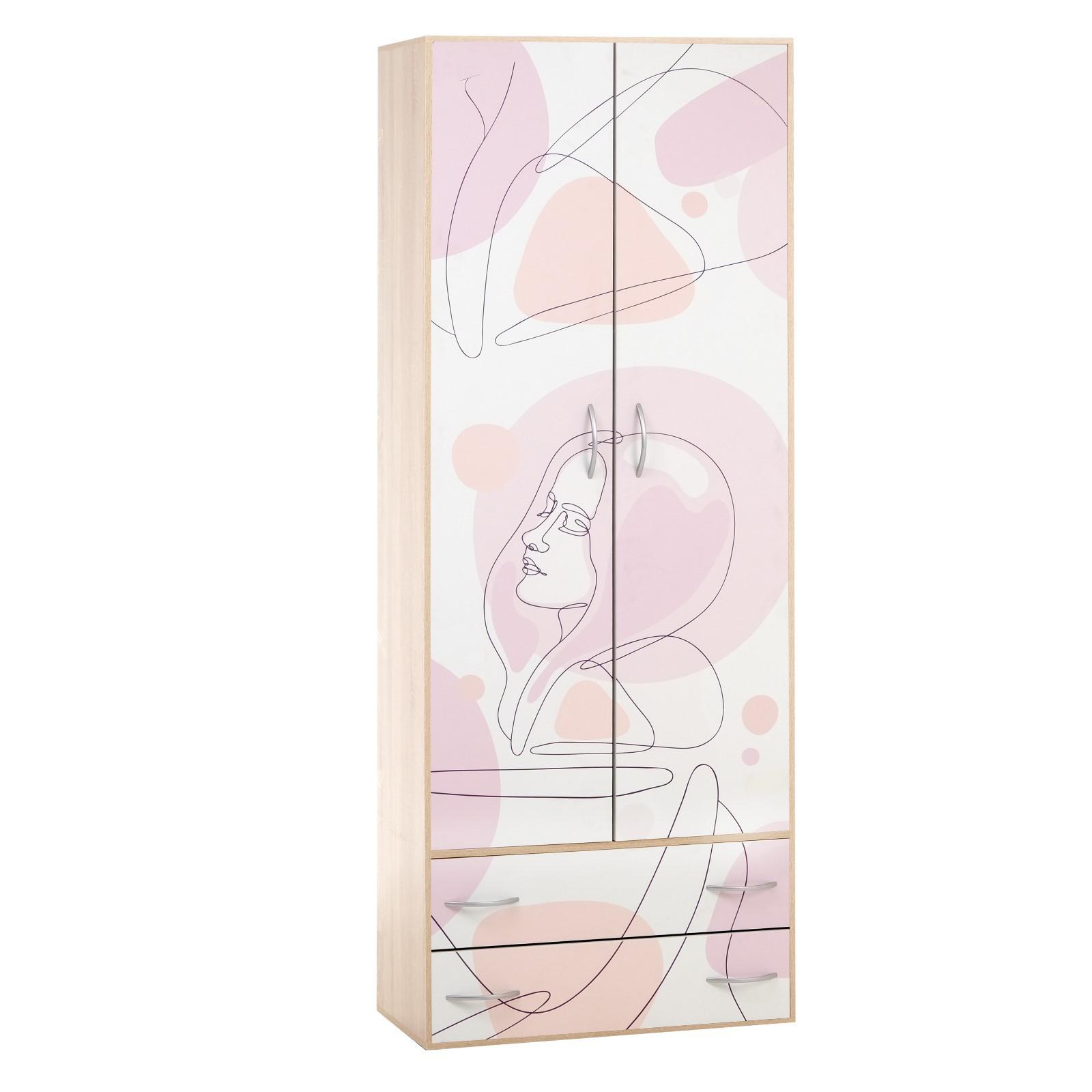 Шкаф с 2-мя ящиками Девочка, 850х450х2200, Дуб сонома/Фотопечать