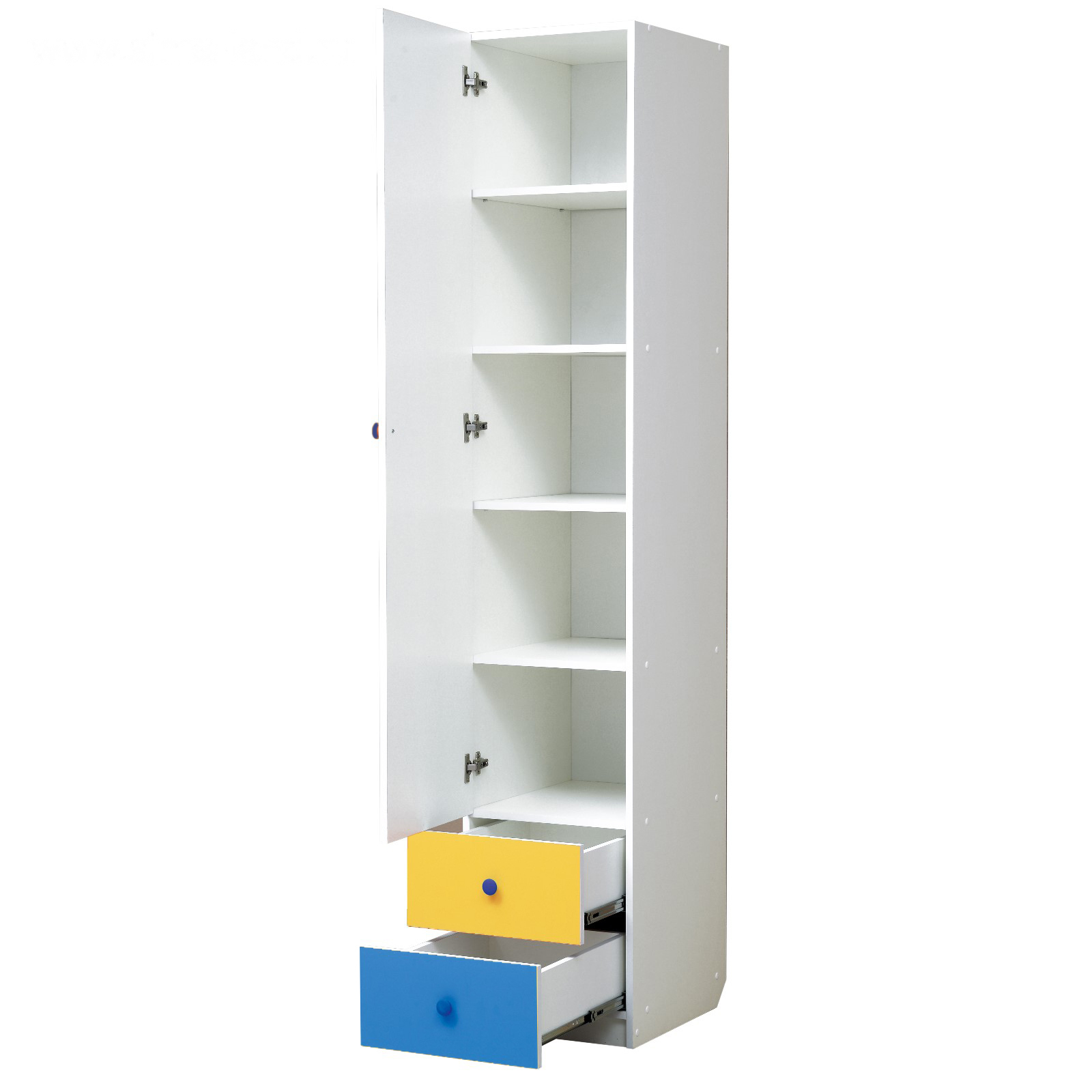 Шкаф с ящиками и зеркалом «Радуга», 400 × 490 × 2100 мм, цвет белый/жёлтый/синий
