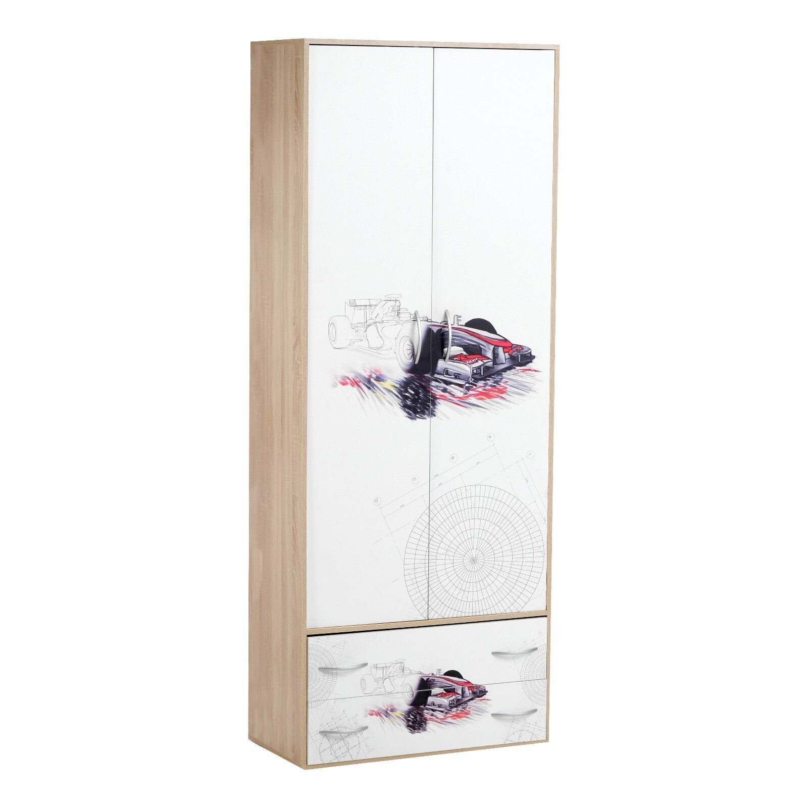 Шкаф с 2-мя ящиками Болид, 850х450х2200, Дуб сонома/Фотопечать