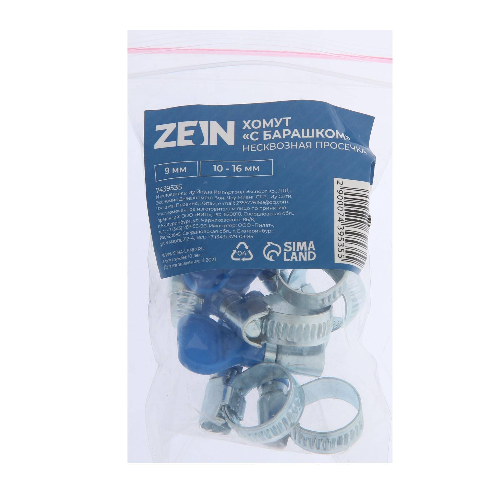 Хомут червячный с "барашком" ZEIN engr, несквозная просечка, диаметр 10-16 мм, оцинкованный