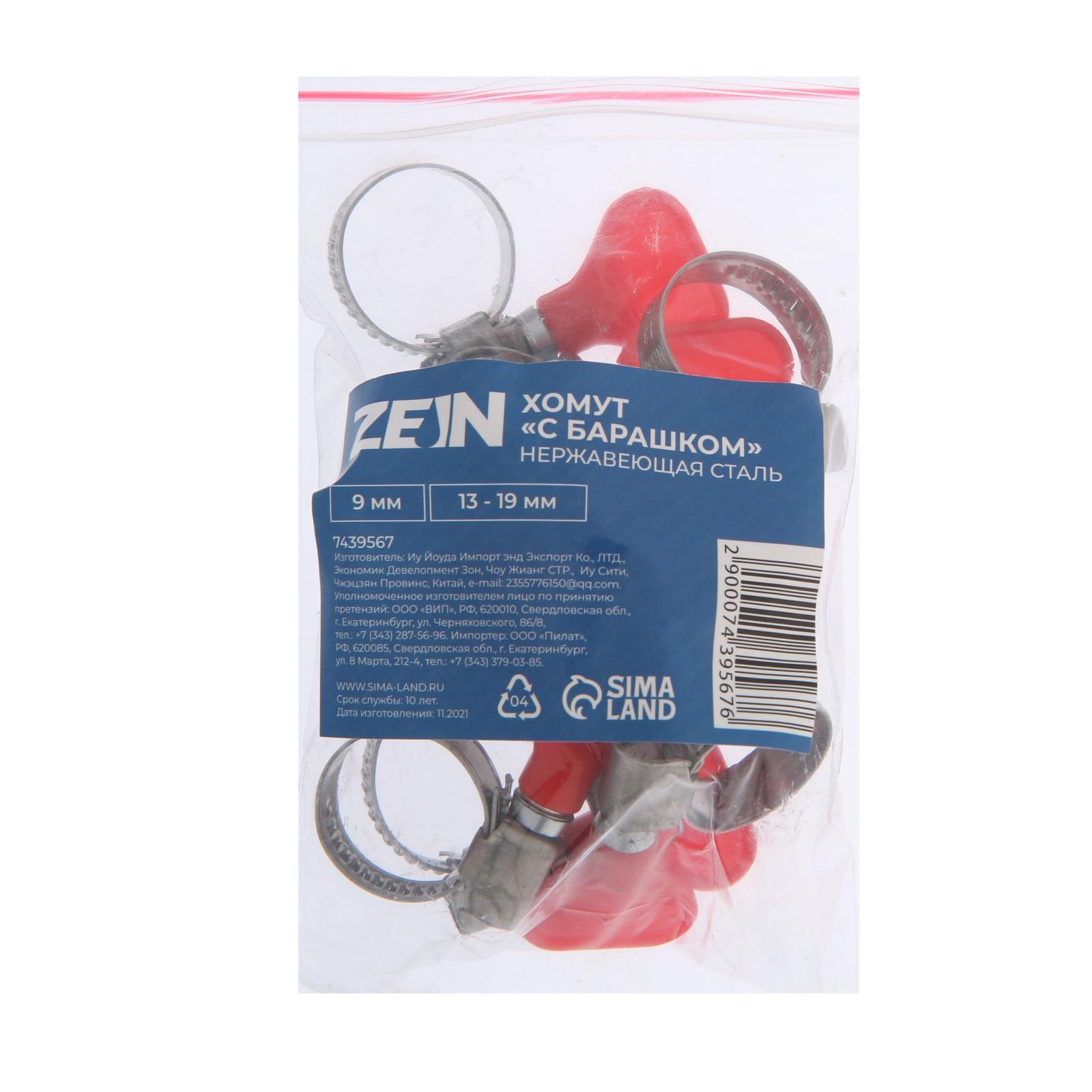 Хомут червячный с "барашком" ZEIN engr, несквозная просечка, диаметр 13-19 мм, нерж сталь