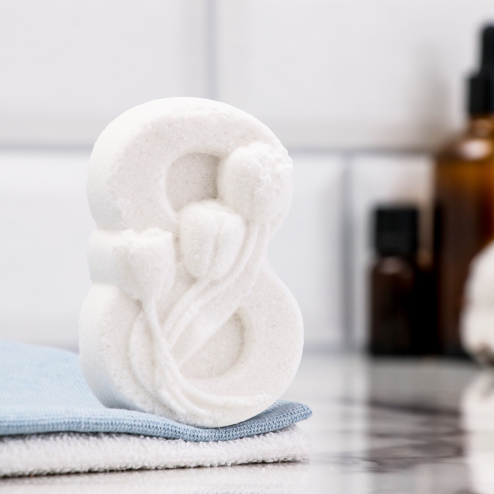 Шипучая бомбочка "С 8 марта с тюльпанами" с ароматом ванили, белая