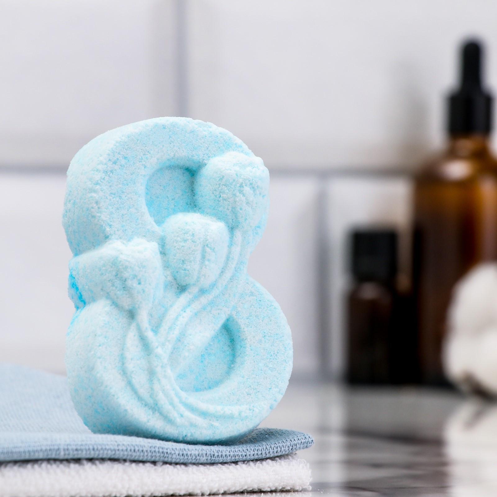 Шипучая бомбочка "С 8 марта с тюльпанами" с ароматом лаванды, голубая