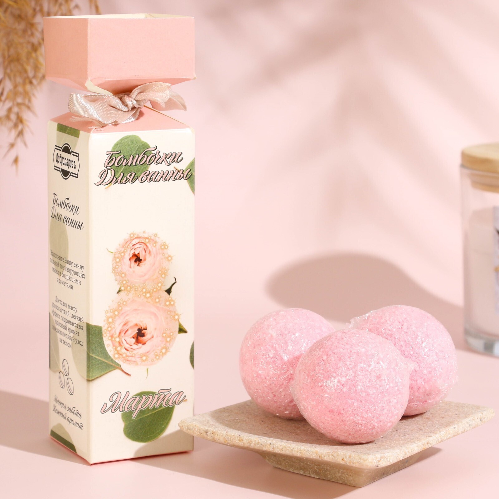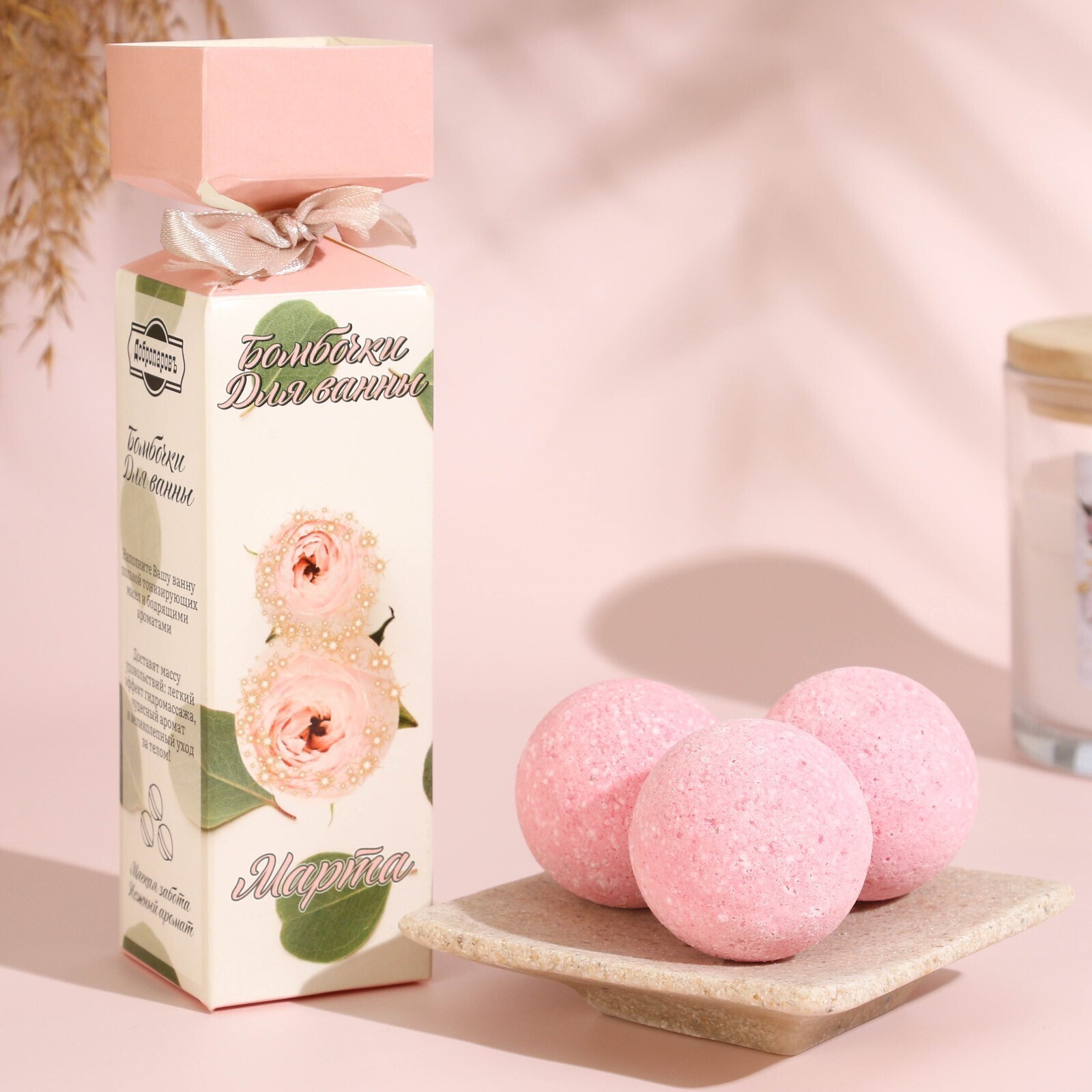 Бомбочки для ванны "С 8 марта, розы", аромат миндаля, 3 шт
