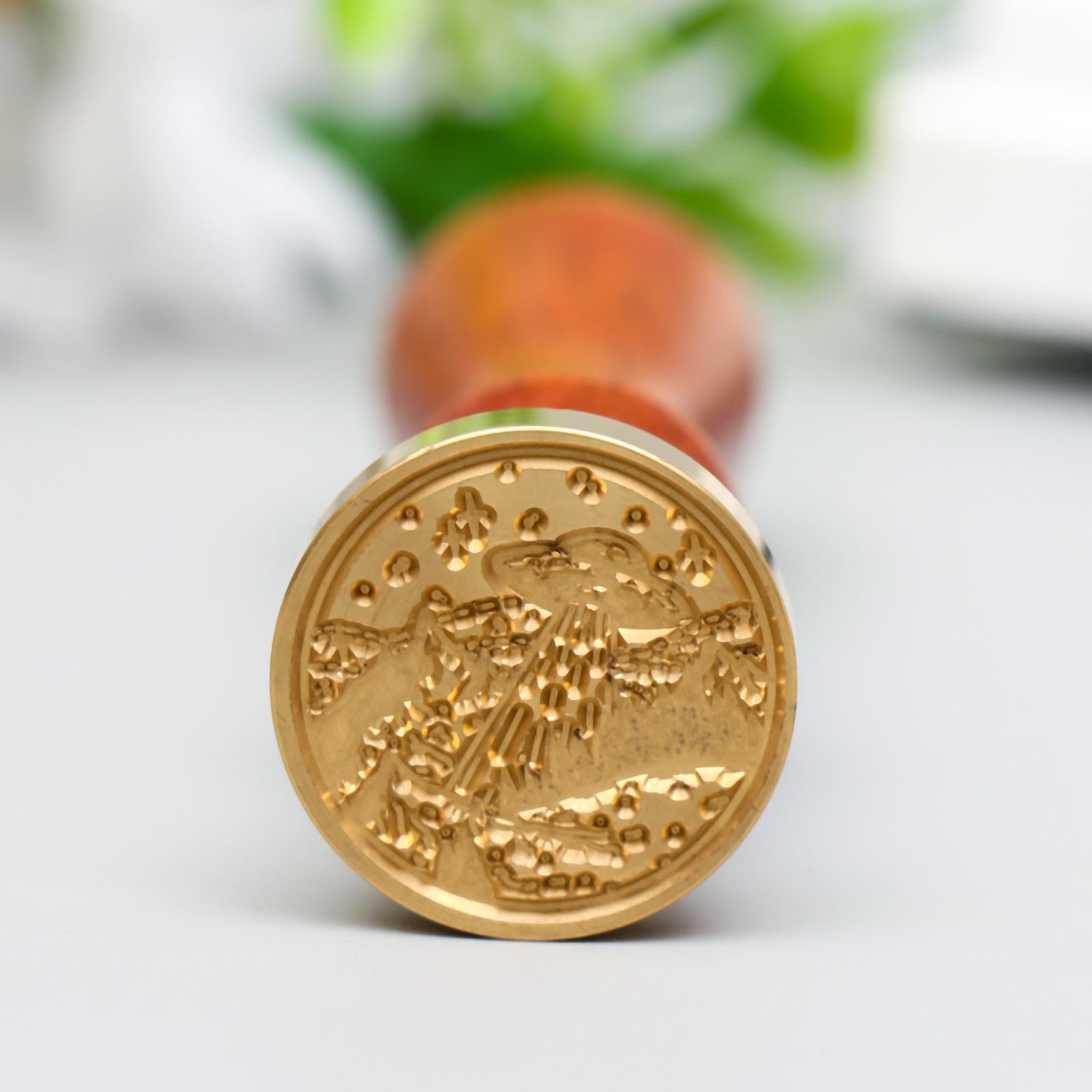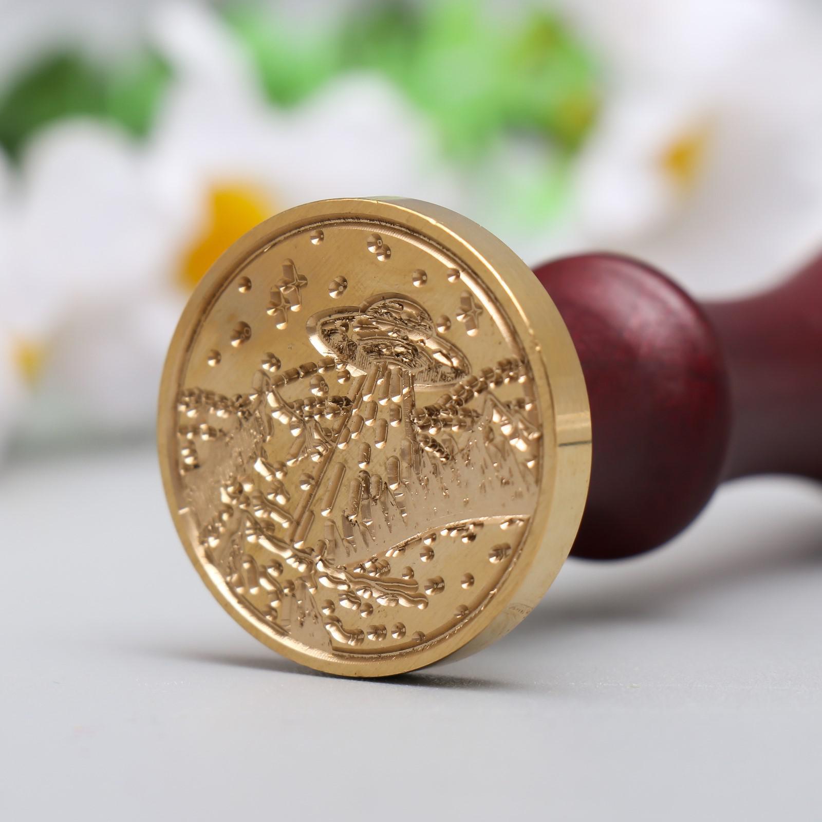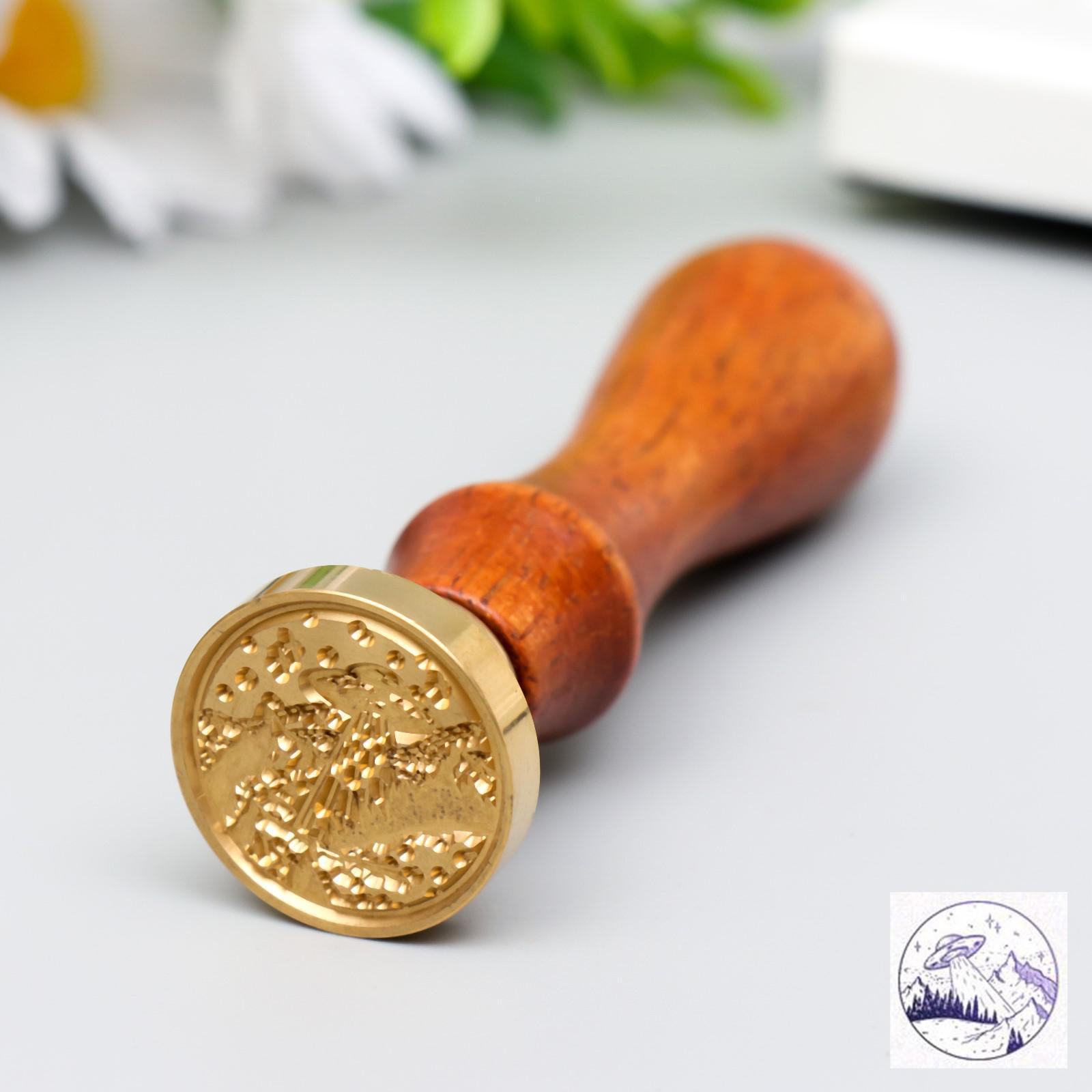 Печать для сургуча с деревянной ручкой "Инопланетный корабль" 9х3х3 см