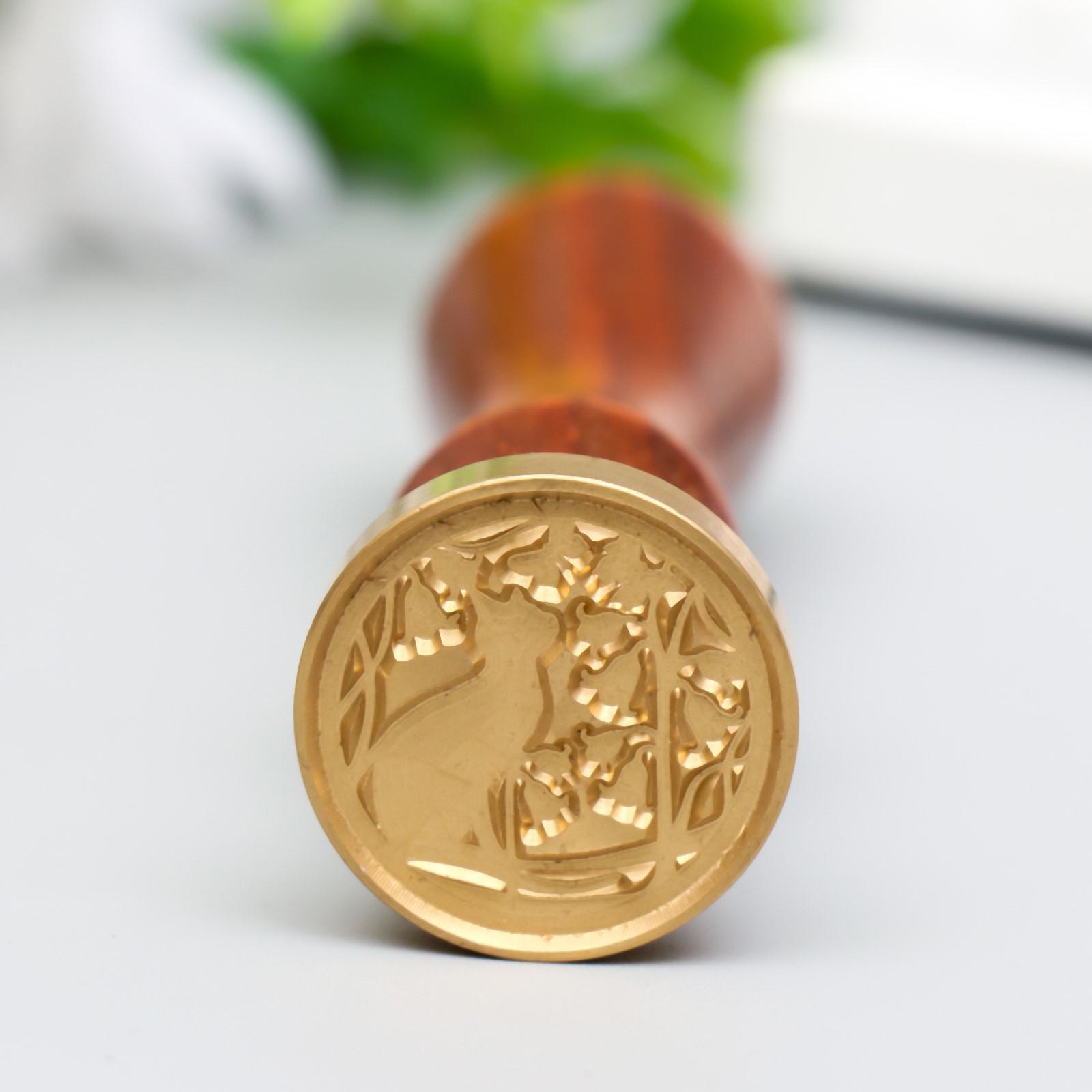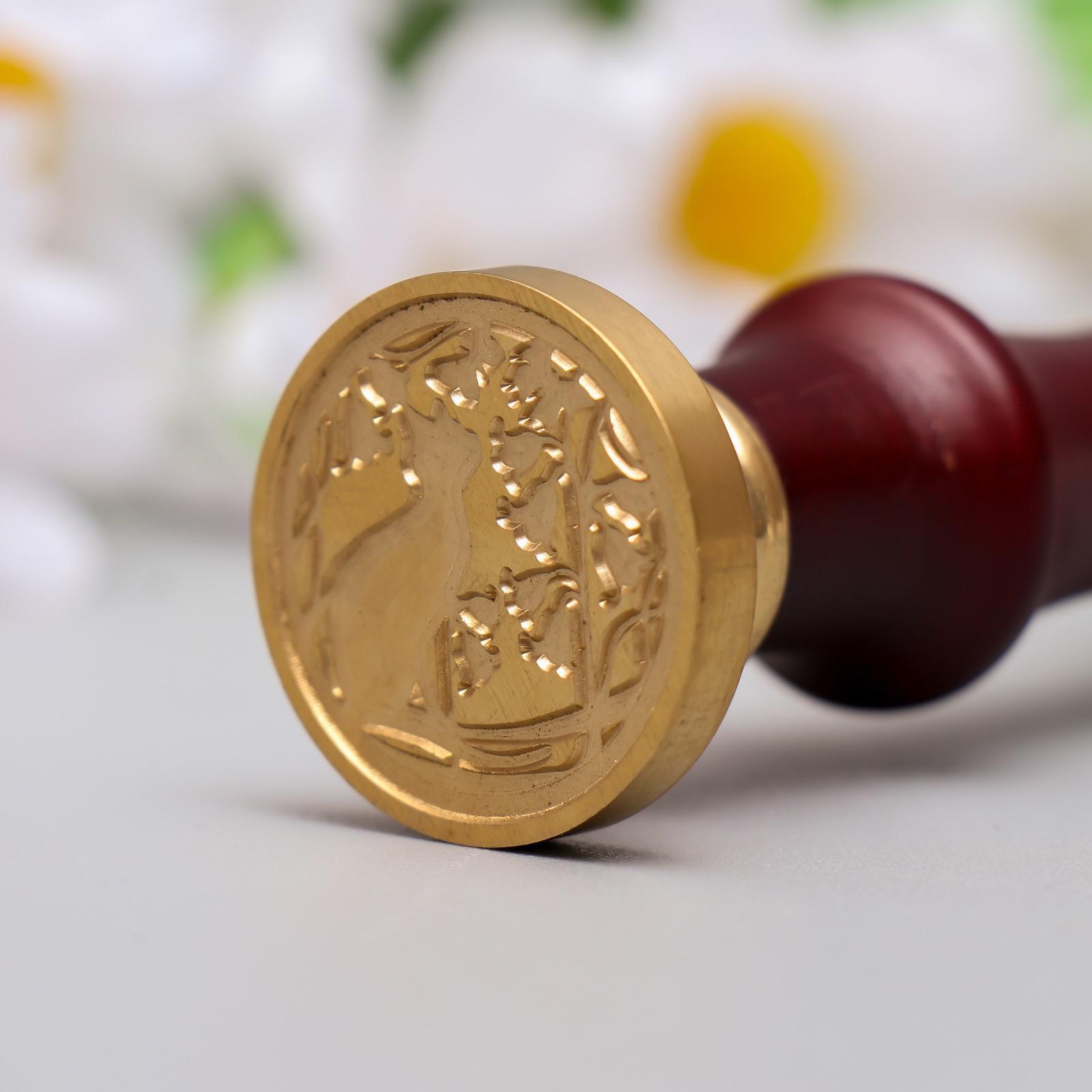 Печать для сургуча с деревянной ручкой "Кот и вьюнок" 9х2,5х2,5 см
