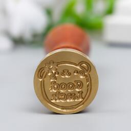 Печать для сургуча с деревянной ручкой "Медвежонок - Удачи" 9х2,5х2,5 см