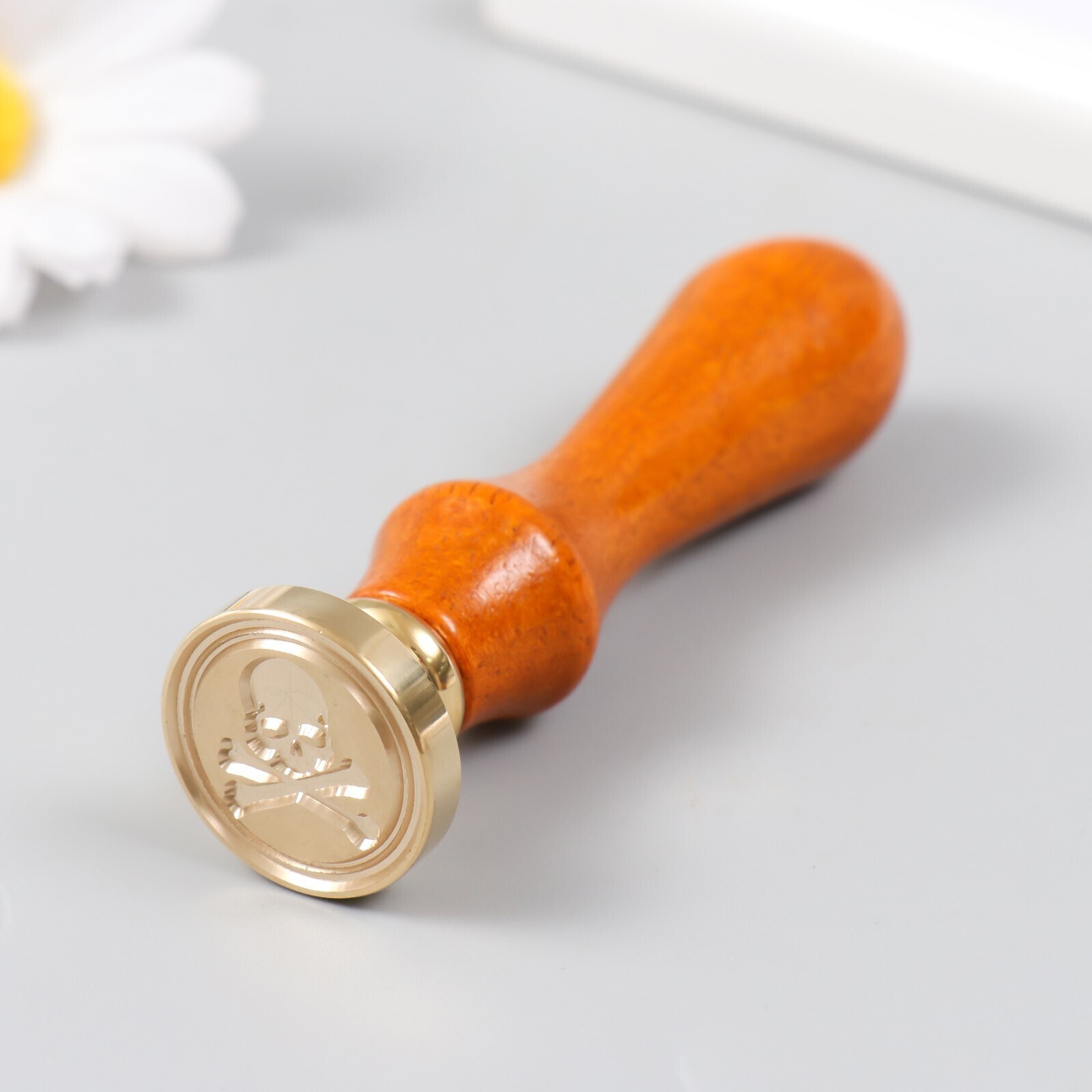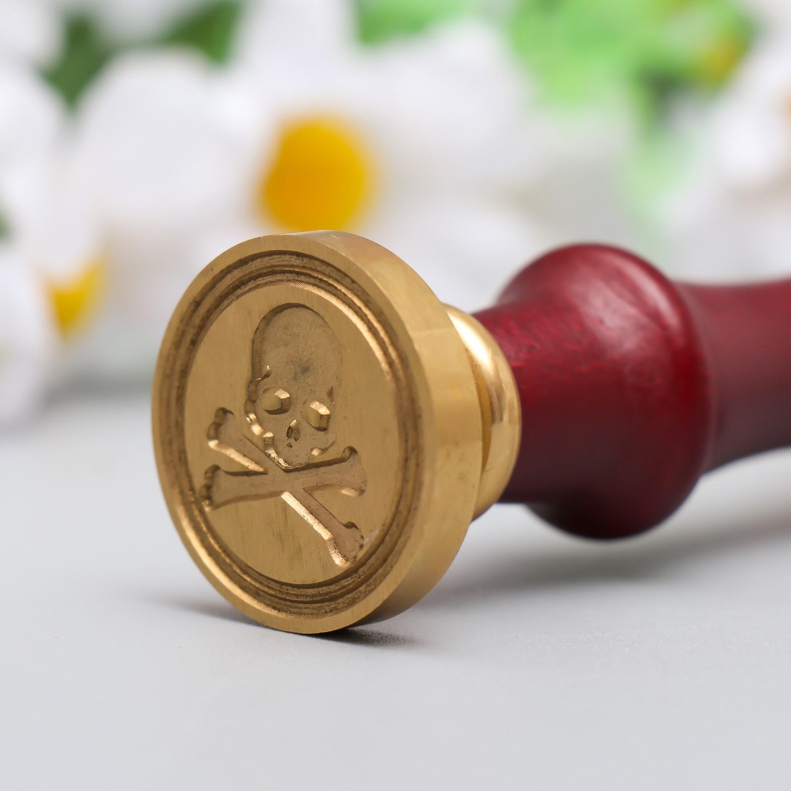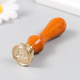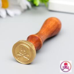 Печать для сургуча с деревянной ручкой "Череп с костями" 9х2,5х2,5 см