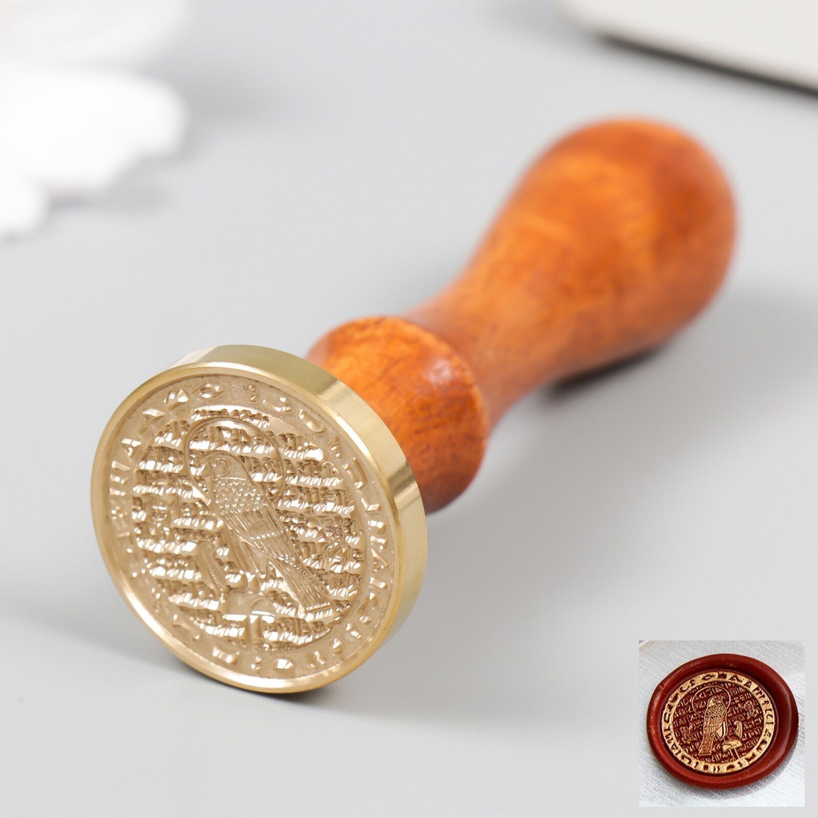 Печать для сургуча с деревянной ручкой "Ястреб" 3х3 см