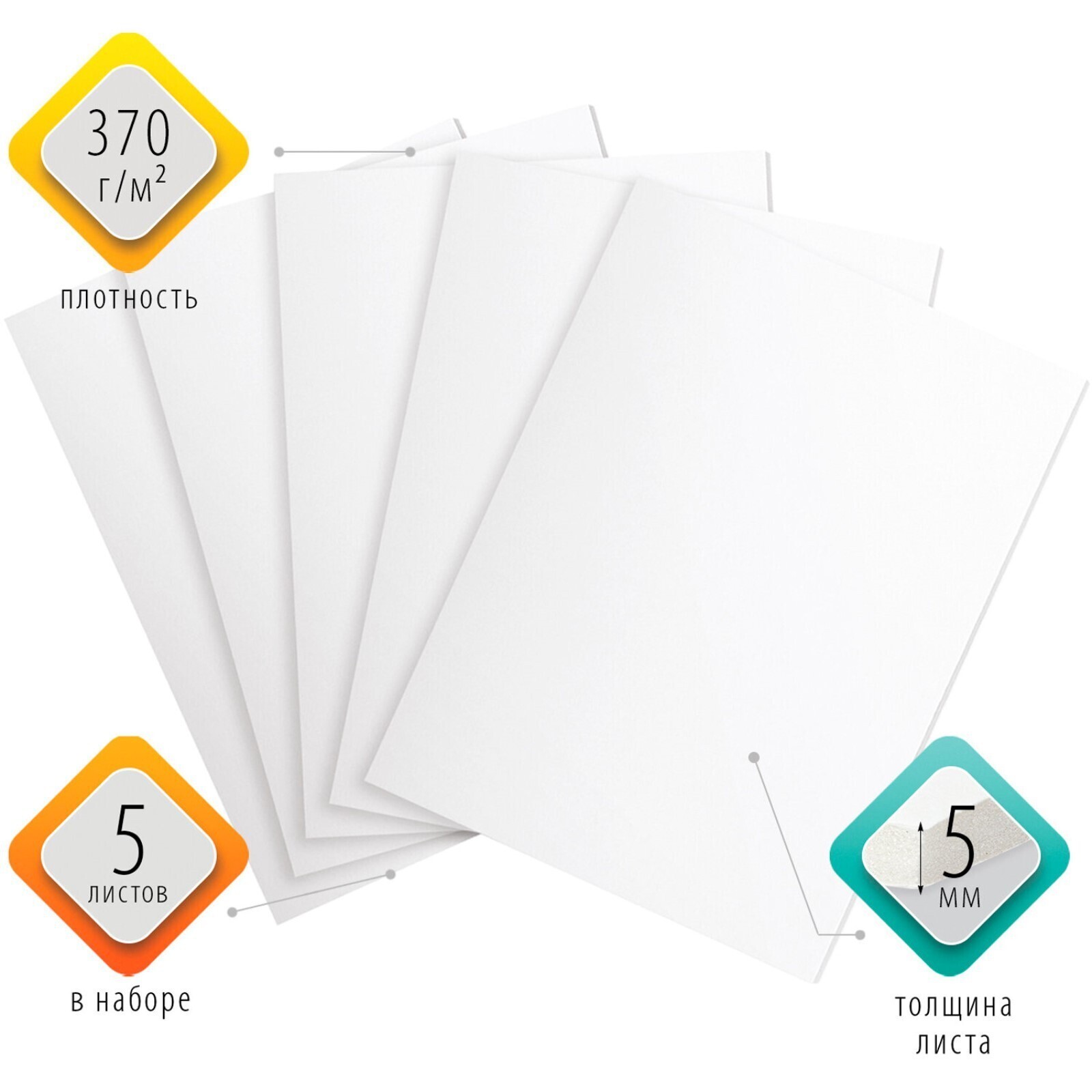 Белый пенокартон форматом 50 х 70 см толщиной 5 мм поставляется комплектом 5 листов, упакованных в гофрокороб с печатью.