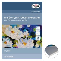 Альбом для акрила и гуаши А4, 30 листов, Гамма "Студия", 180 г/м2, склейка
