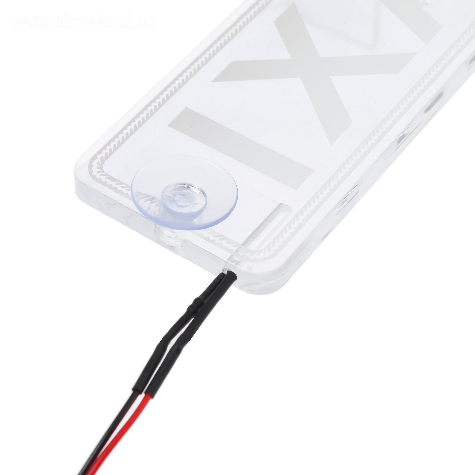 Фонарь ТАКСИ предназначен для использования в таксопарках и для частных извозчиков. Модель устанавливается на присосках к лобовому стеклу в салоне автомобиля. Встроенная светодиодная подсветка белого цвета питается от гнезда прикуривателя. Фактически является автомобильным аксессуаром, что позволяет использовать его абсолютно любому водителю.