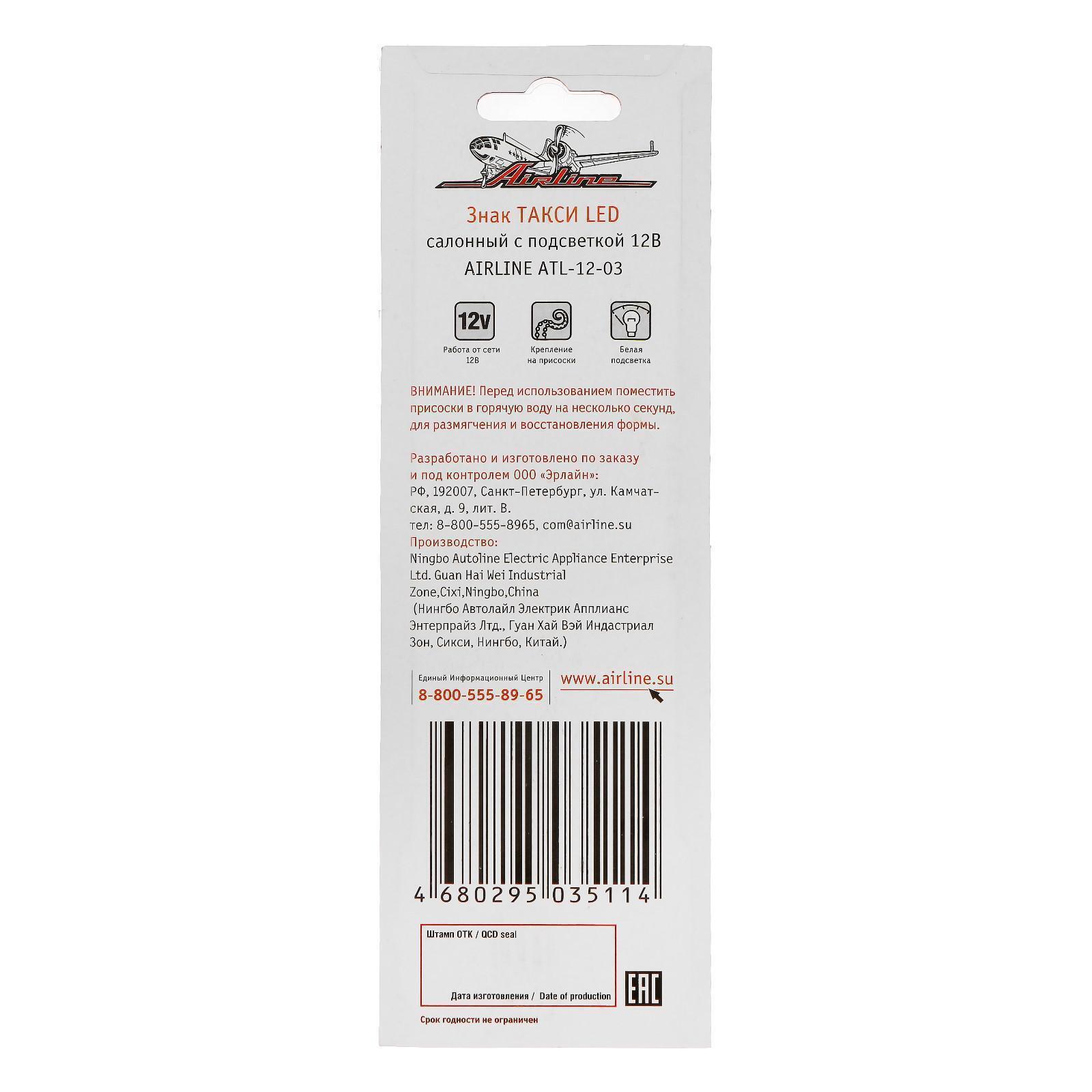 Знак Airline "ТАКСИ", салонный, с подсветкой, 12В