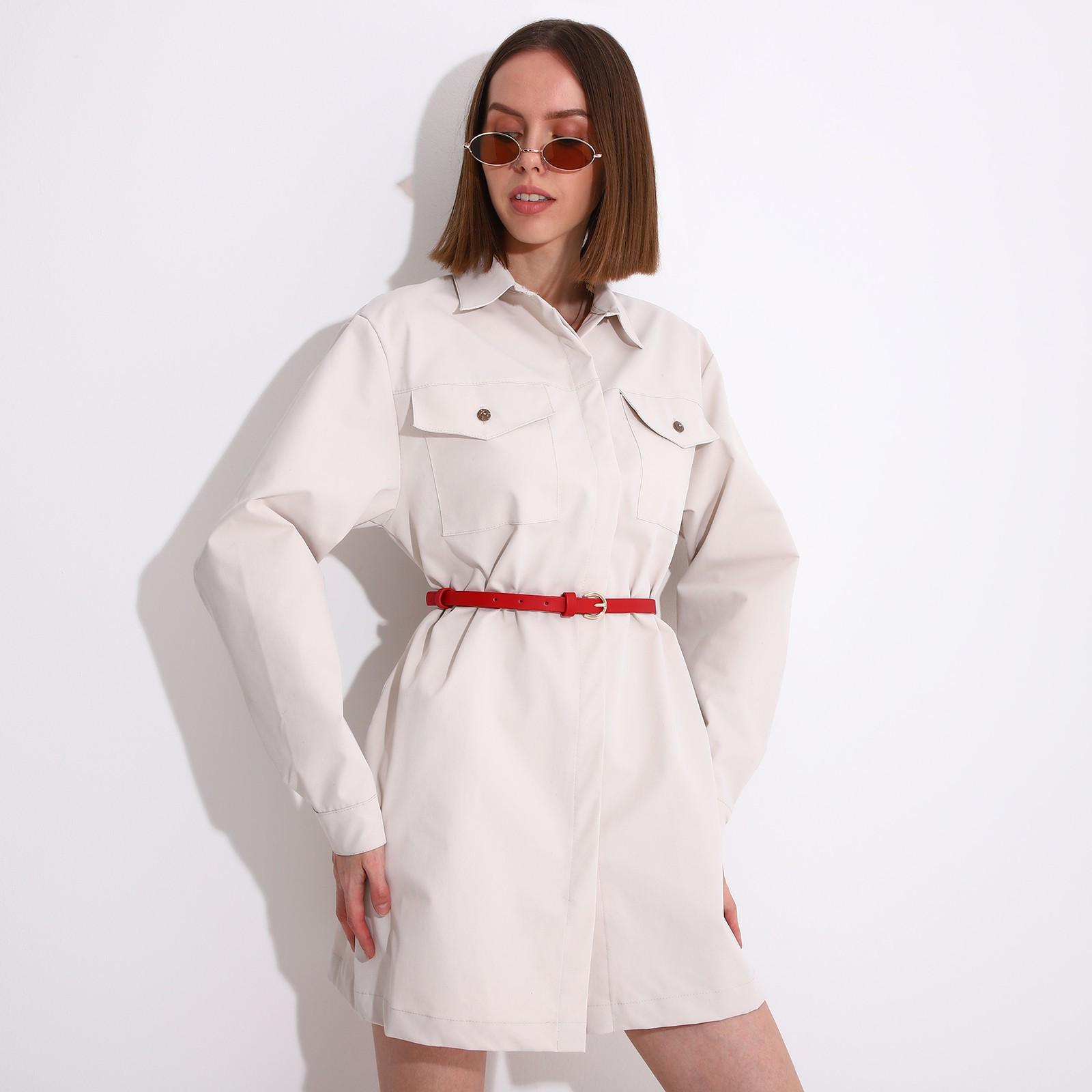 Ремень женский, ширина 1,3 см, винт, пряжка метал, цвет красный
