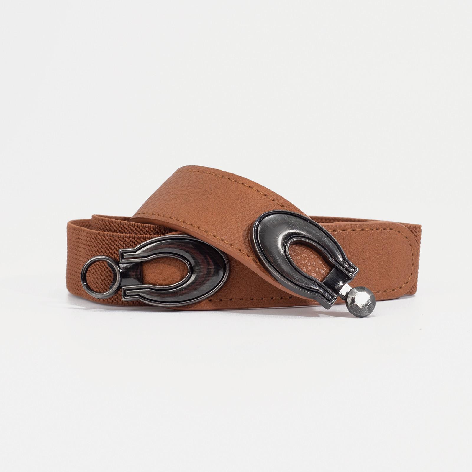 Ремень женский, ширина 2,5 см, резинка, пряжка серебро, цвет рыжий